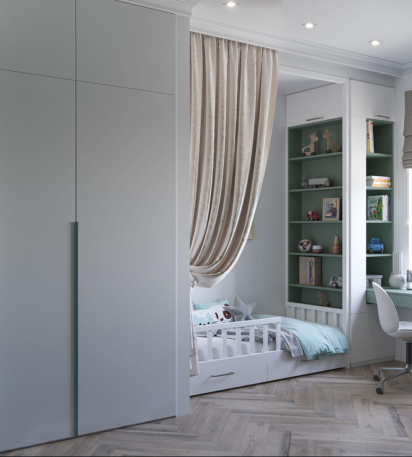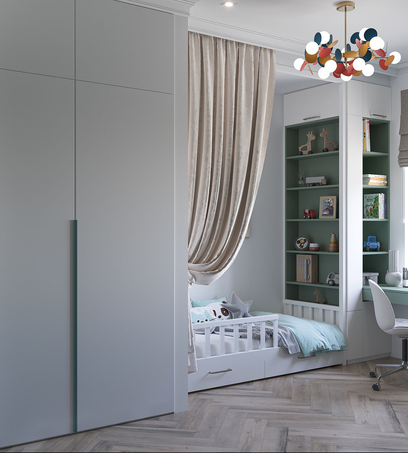 Для оформления этой детской дизайнер предложил заказчикам два варианта.