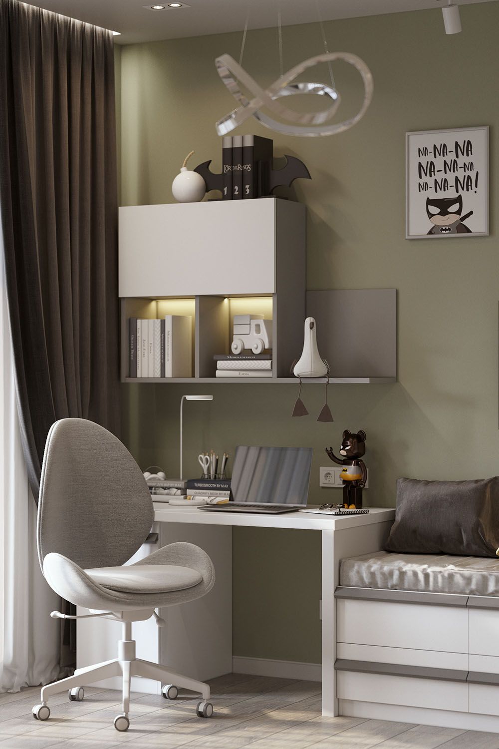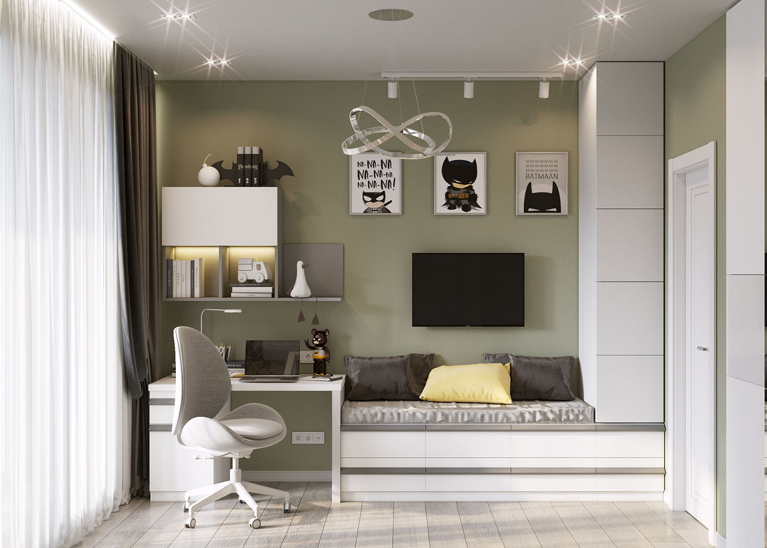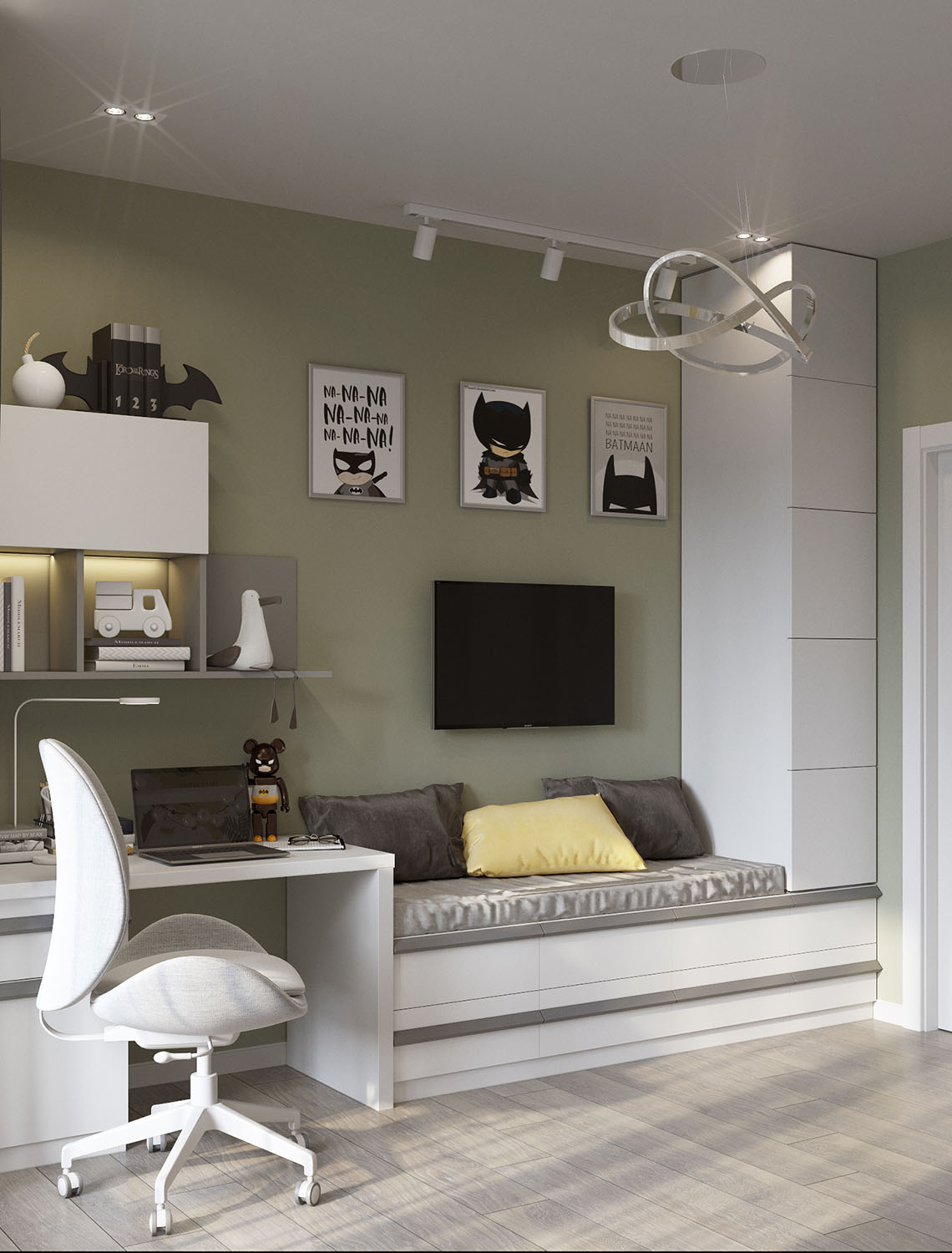 Детская комната площадью 12,5 м² для маленького мальчика, который увлекается изучением животных и стран. Поэтому для оформления акцентной стены была выбрана коллекция TRAVEL KIDS. Это не просто точное отображение стран и городов, но и яркое тематическое оформление! Стиль можно подобрать под интересы и вкусы юного первооткрывателя: рисованные принты с динозаврами, которые показывают Землю в доисторический период, или стилизованные изображения достопримечательностей – Эйфелевой и Пизанской башен, Биг Бена, Статуи Свободы и других.