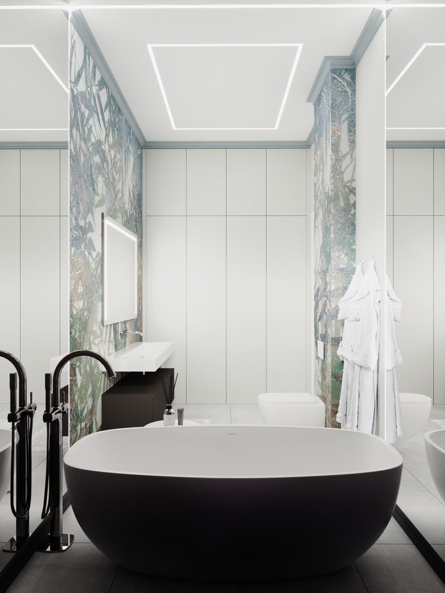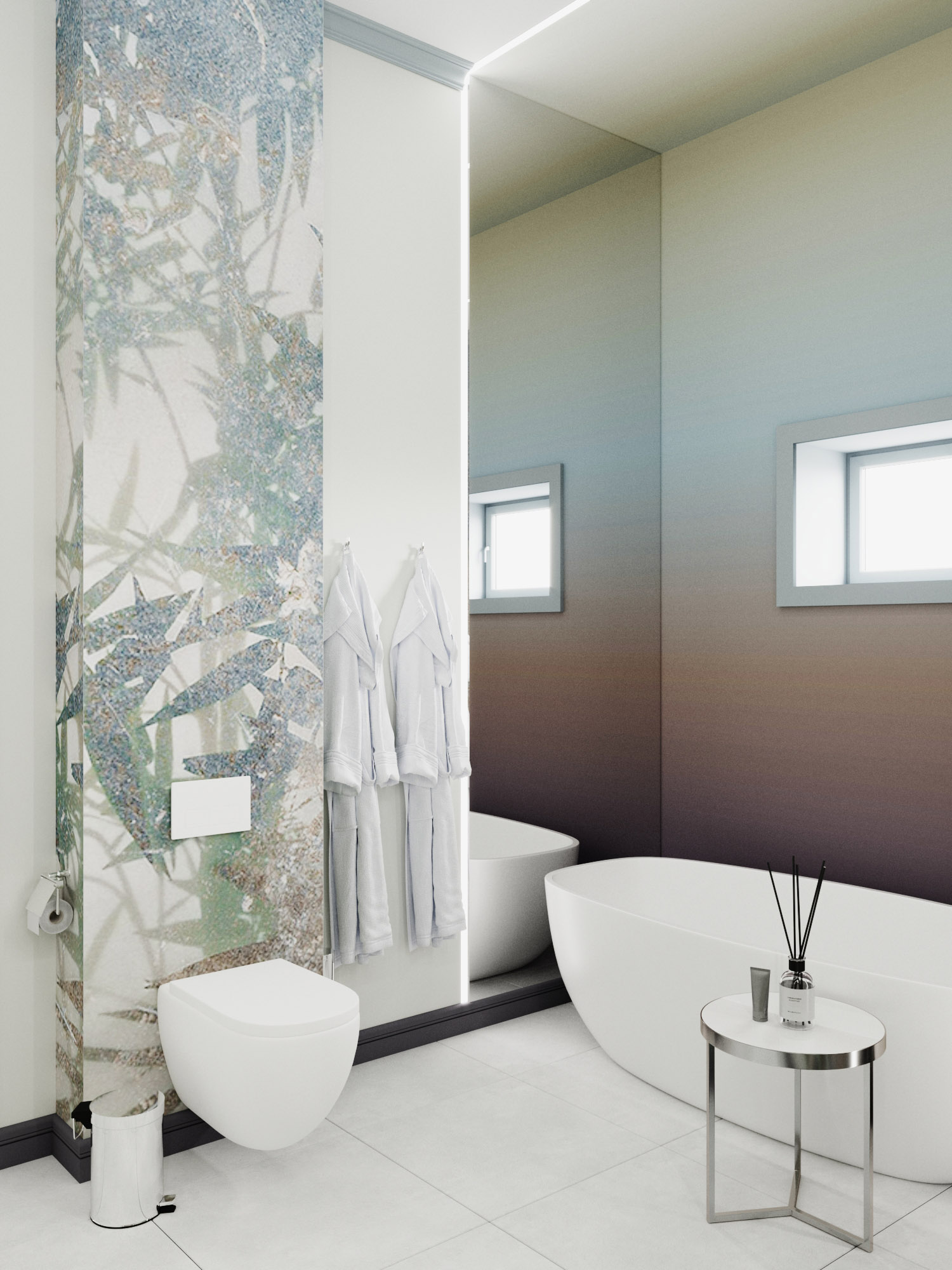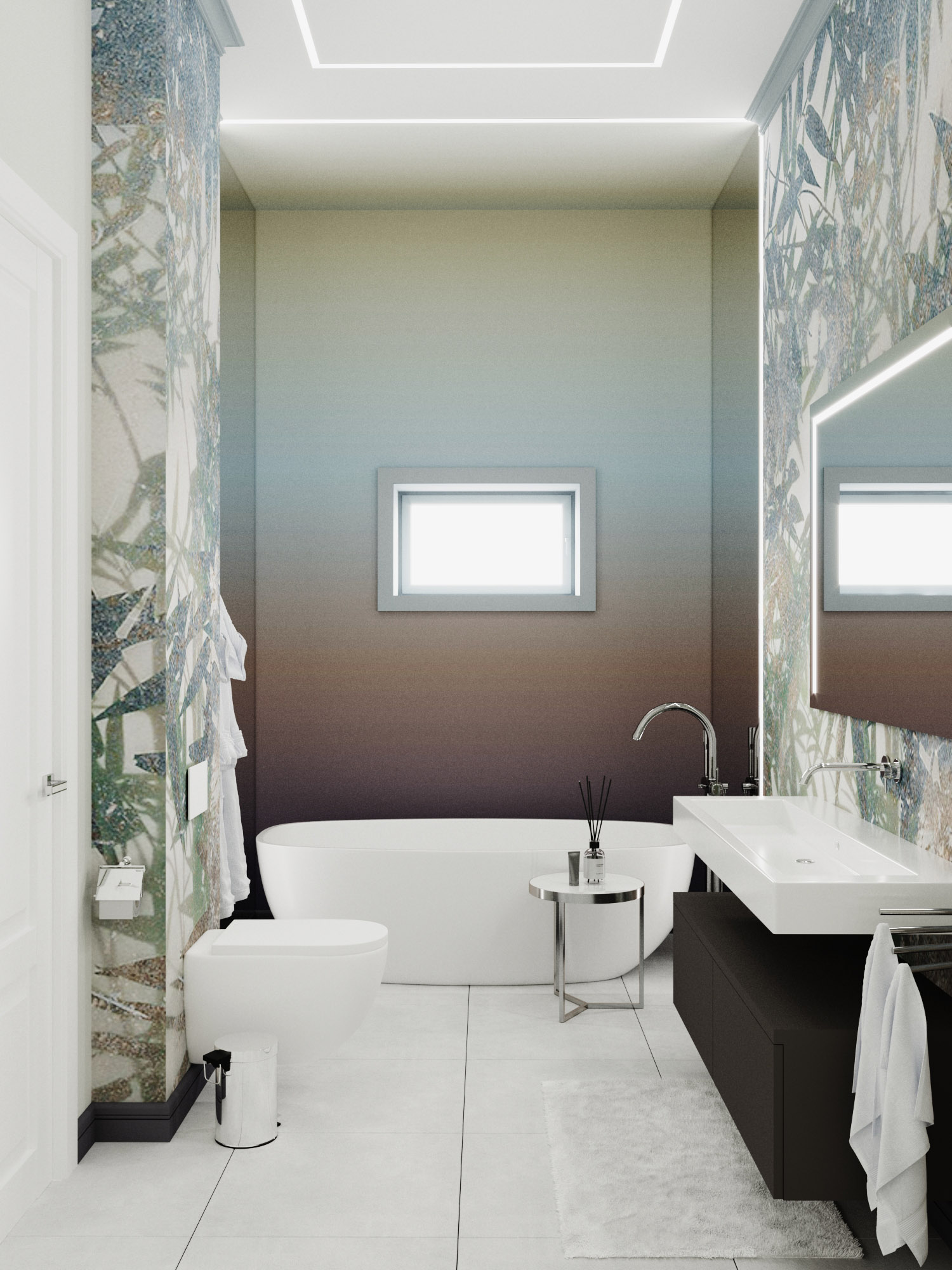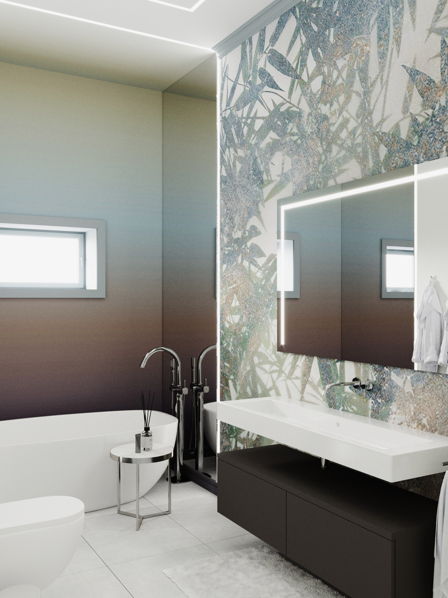 Проект ванной комнаты с обоями «Vetve 21». Стильная графика, природные мотивы, естественные оттенки — все это вы найдете в нашей чудесной коллекции. Не важно, какой интерьерный стиль вы выберете — наши обои легко впишутся в любой из них!