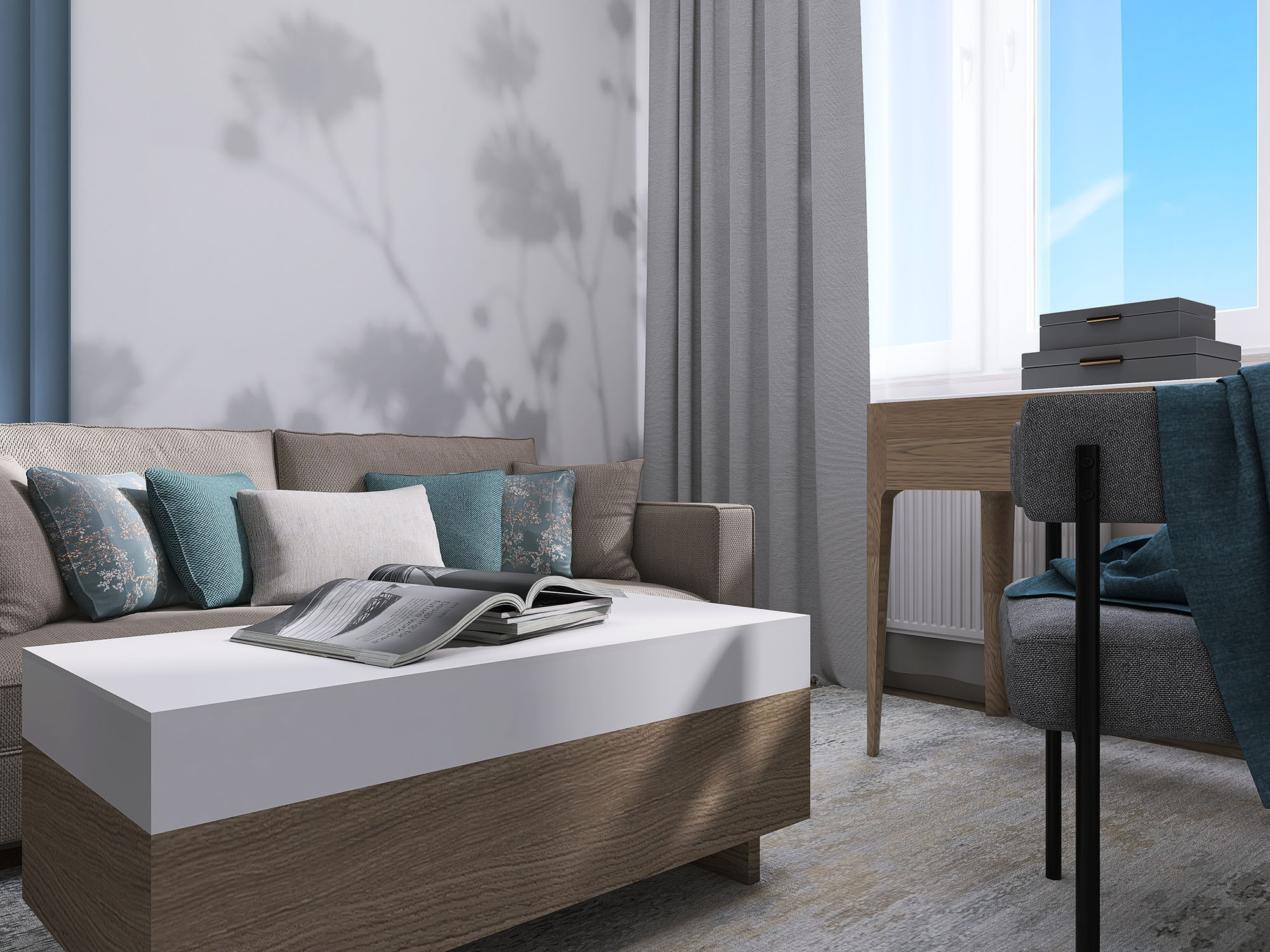 Интерьер гостевой комнаты. Хотелось создать светлое настроение, придать комнате легкость. С этой задачей великолепно справились обои из коллекции Vetve 22.