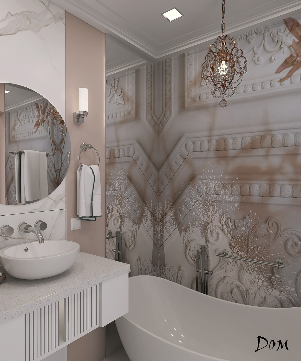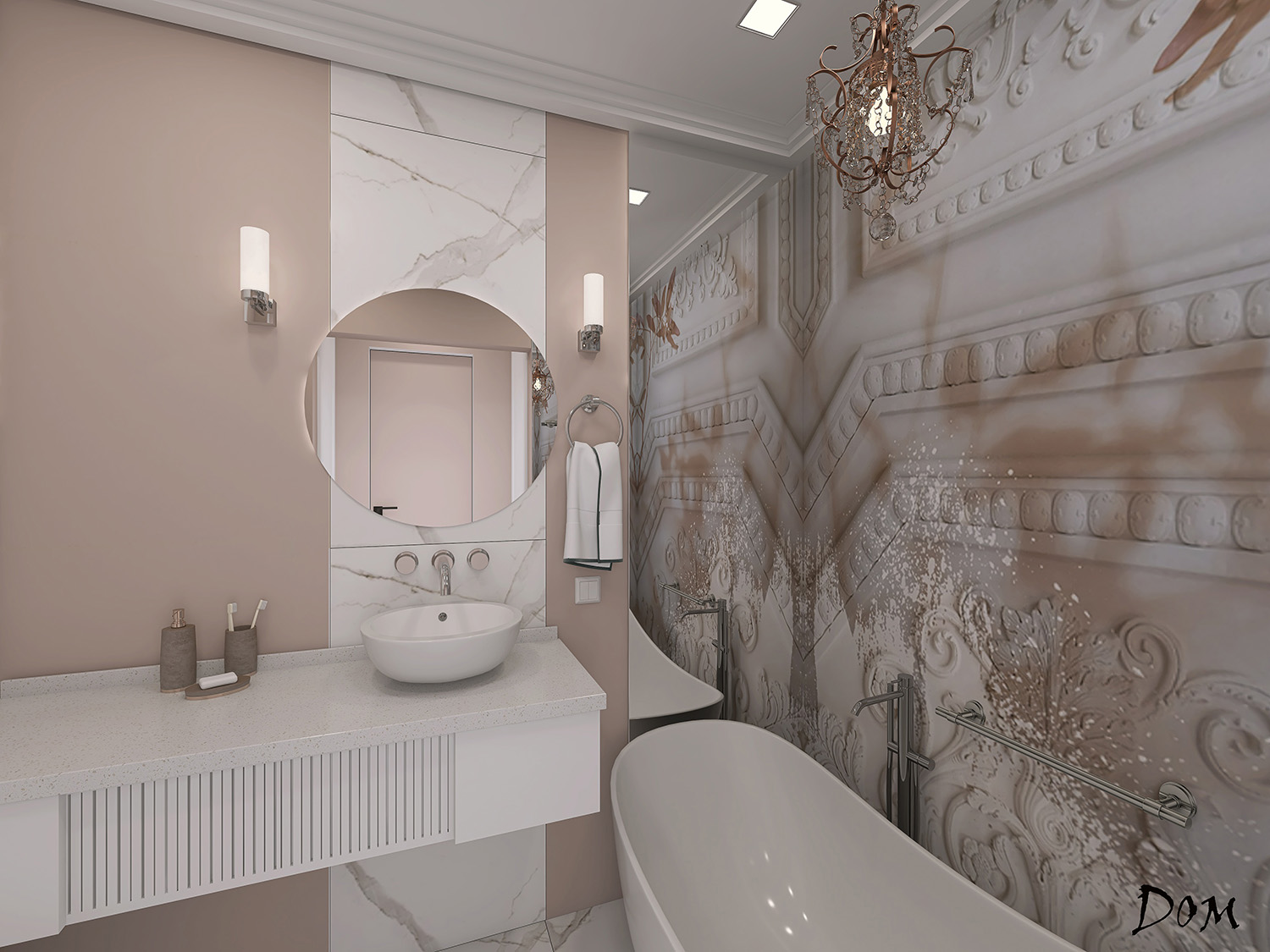 Дизайн ванной комнаты в ЖК «Петропавловский», г.Уфа. Заказчица просила вписать антикварную мебель, но так, чтобы при этом интерьер смотрелся современно. Поэтому для оформления выбрали коллекцию VETVE 22, что помогло передать дух классики и характер самой хозяйки!