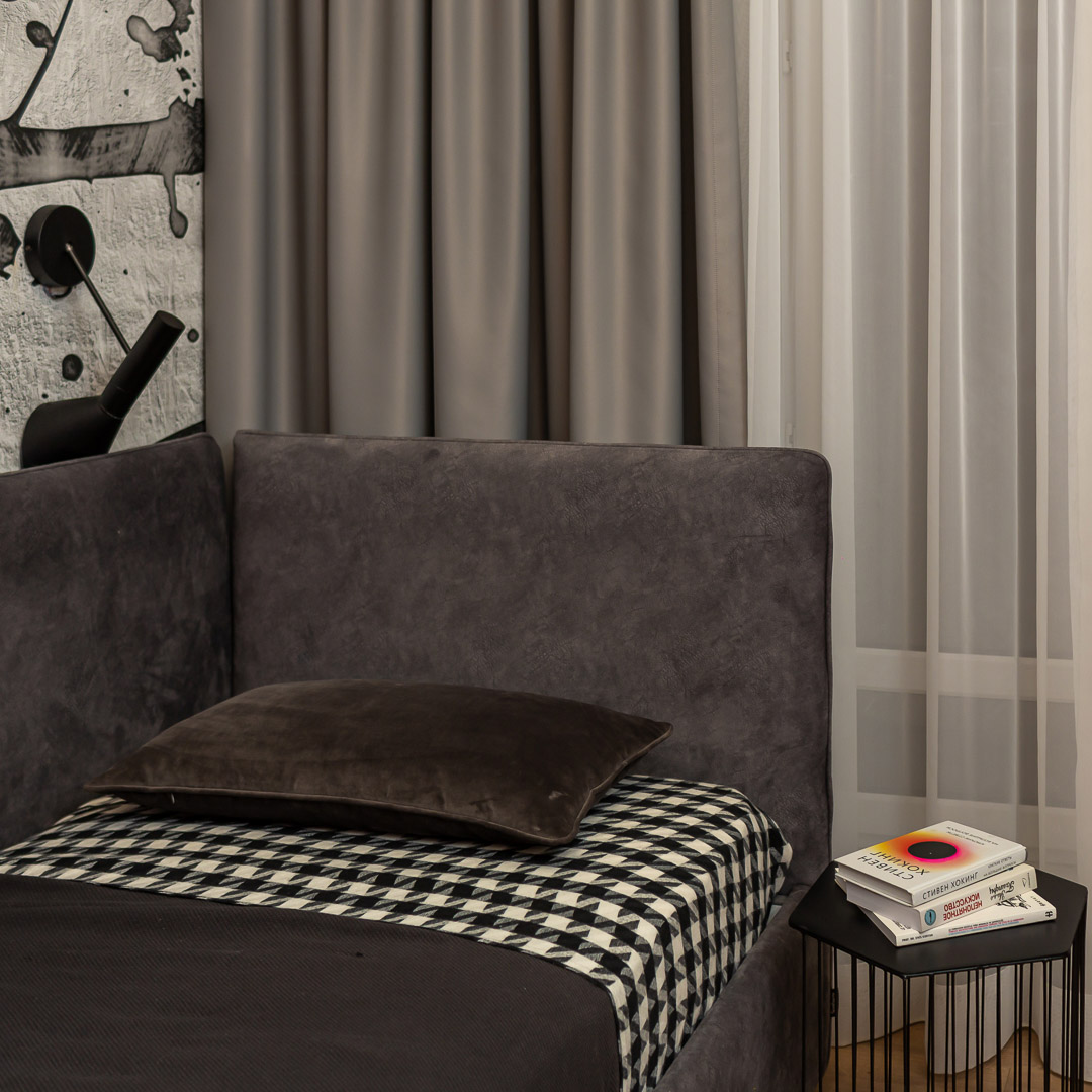 Детская комната для мальчика-подростка. Яркая, брутальная, энергичная. Обои от «Wabi Sabi» отлично вписались в общую гамму и настроение интерьера.