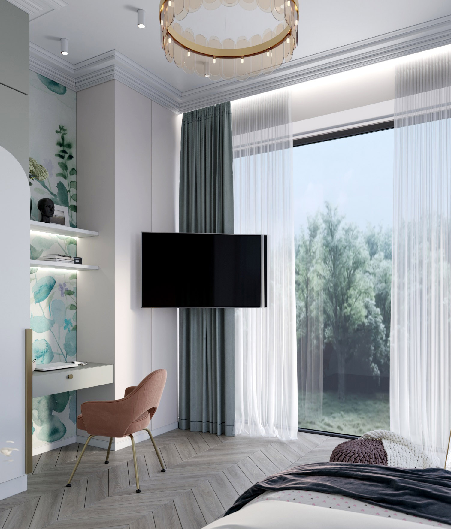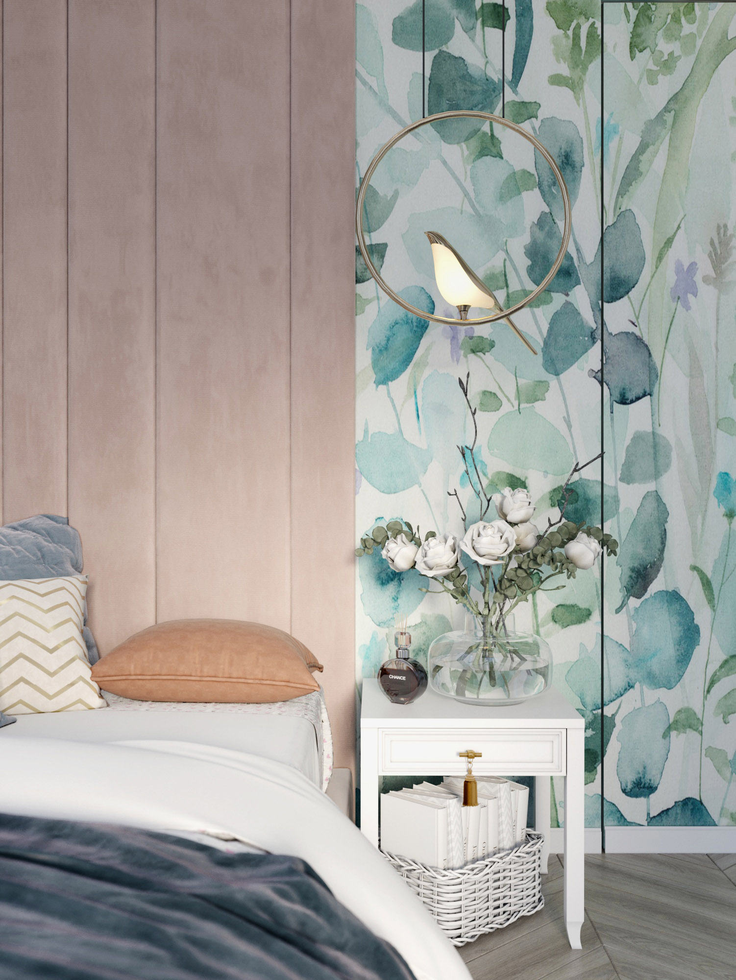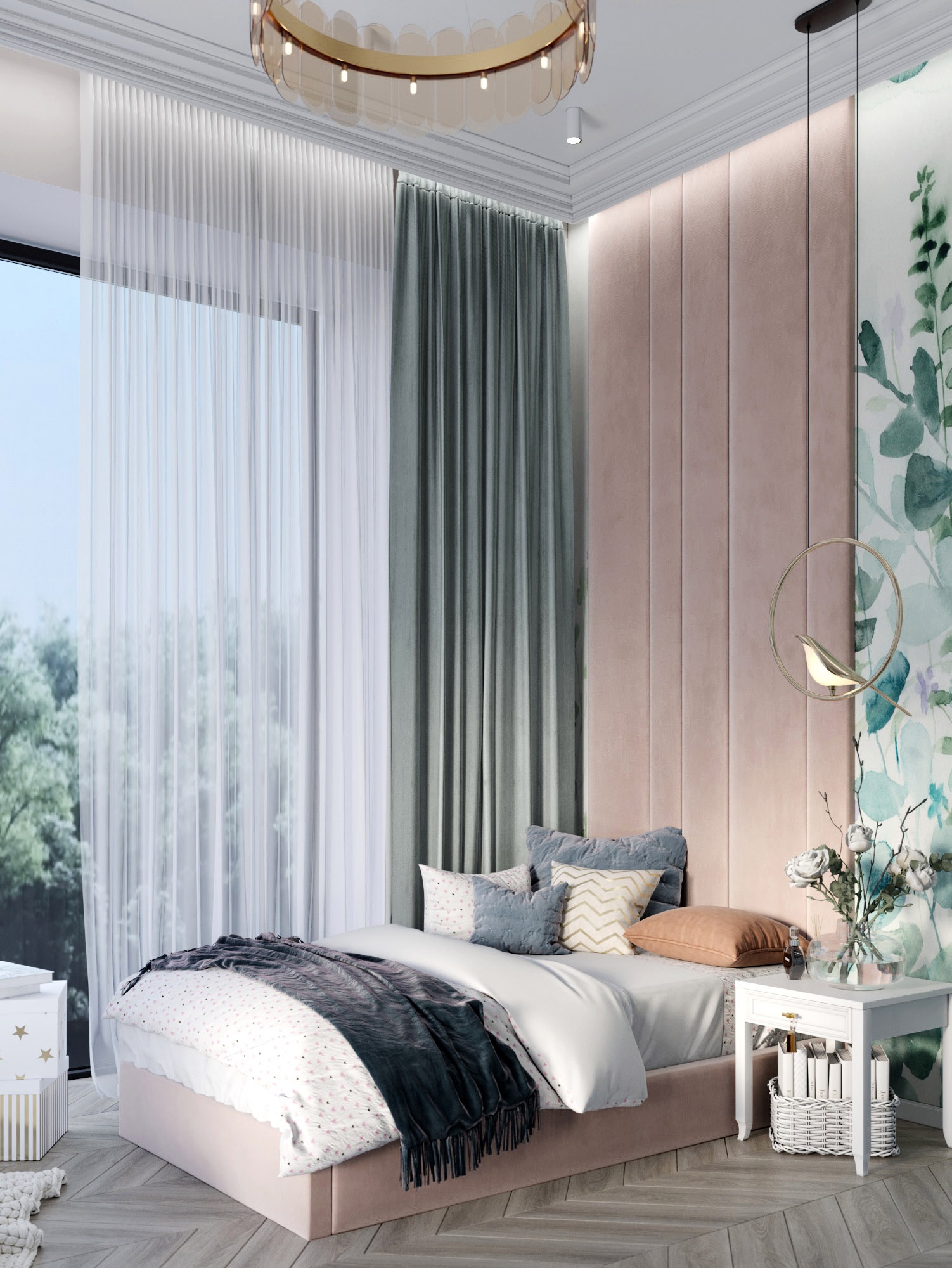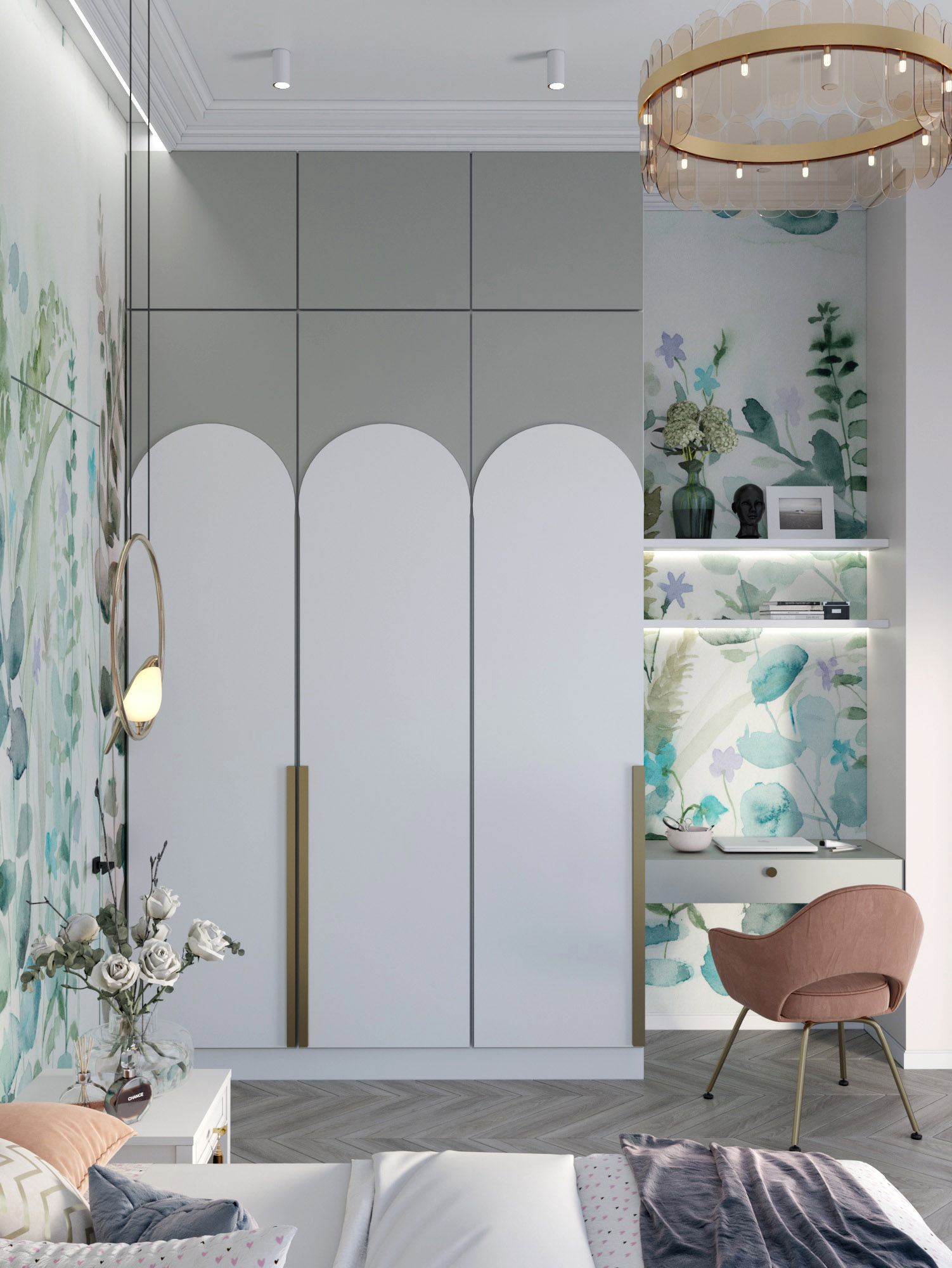 Проект выполнен в г. Сочи, в частном доме. Это комната для девочки, задачей было создать пространство, которое будет создавать настроение «сказочности», но в то же время, чтобы с взрослением ребенка интерьер не оказался слишком детским. C обоями «Watercolor-21» удалось поймать нужное настроение!
