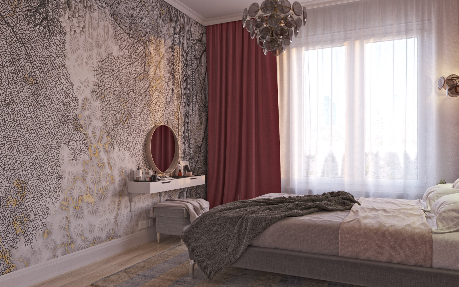 Спальня с невероятными обоями «Waves»