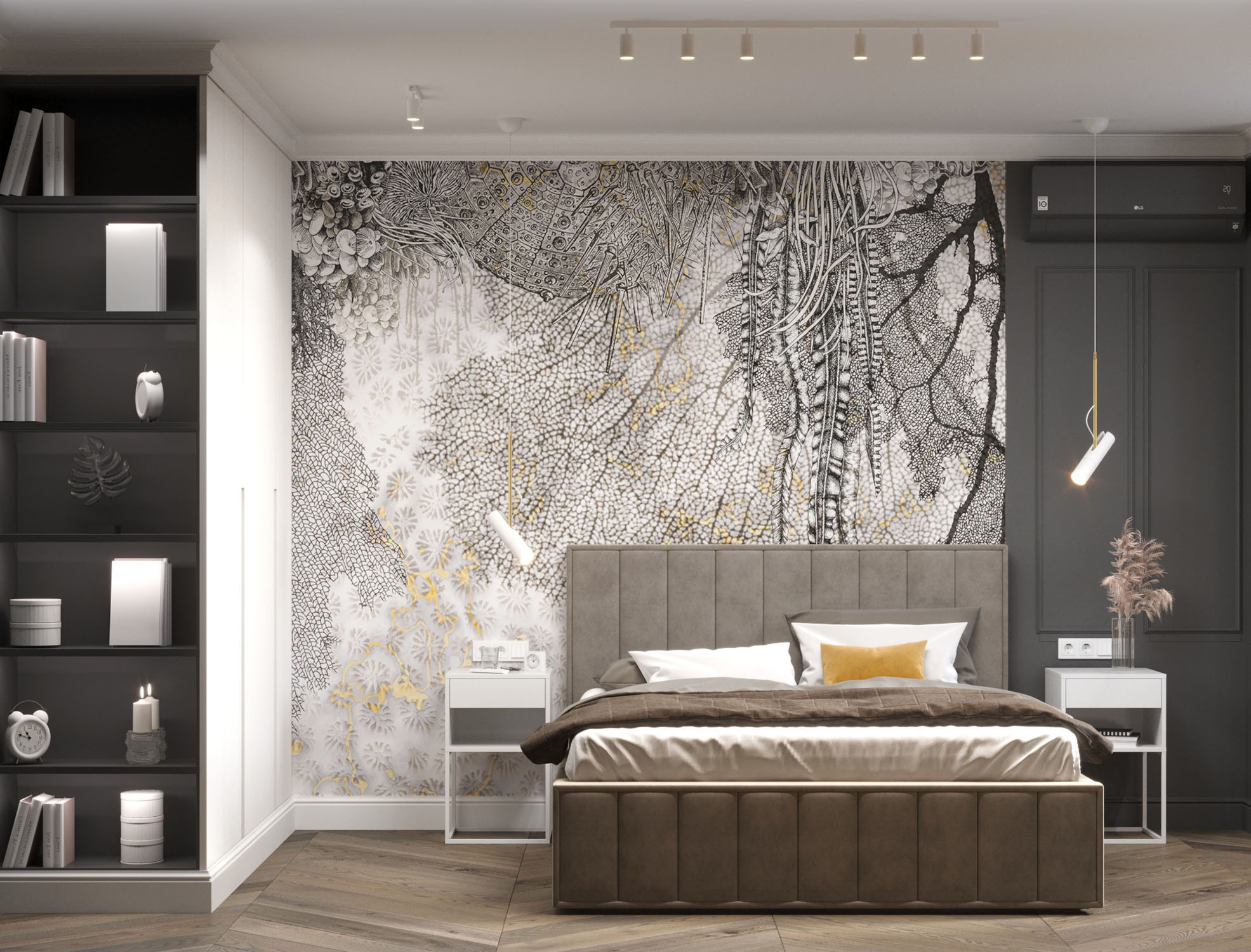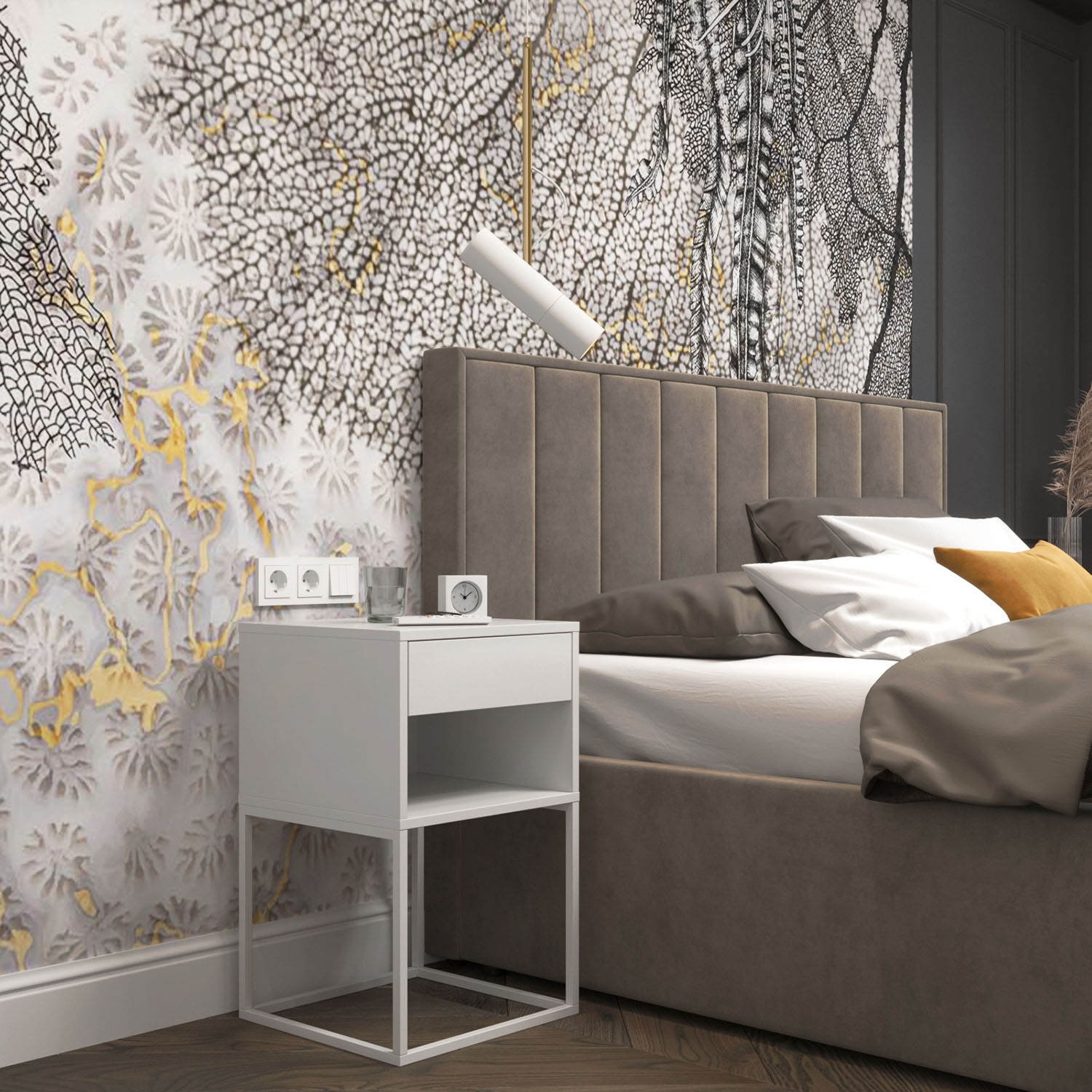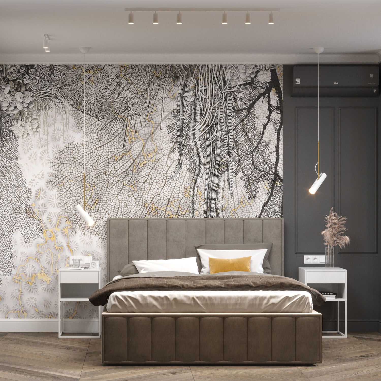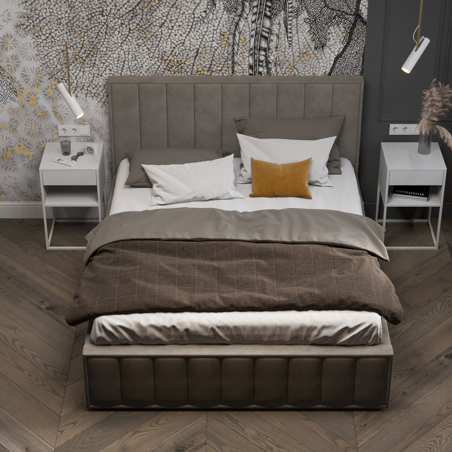 Фреска Waves в интерьере спальни