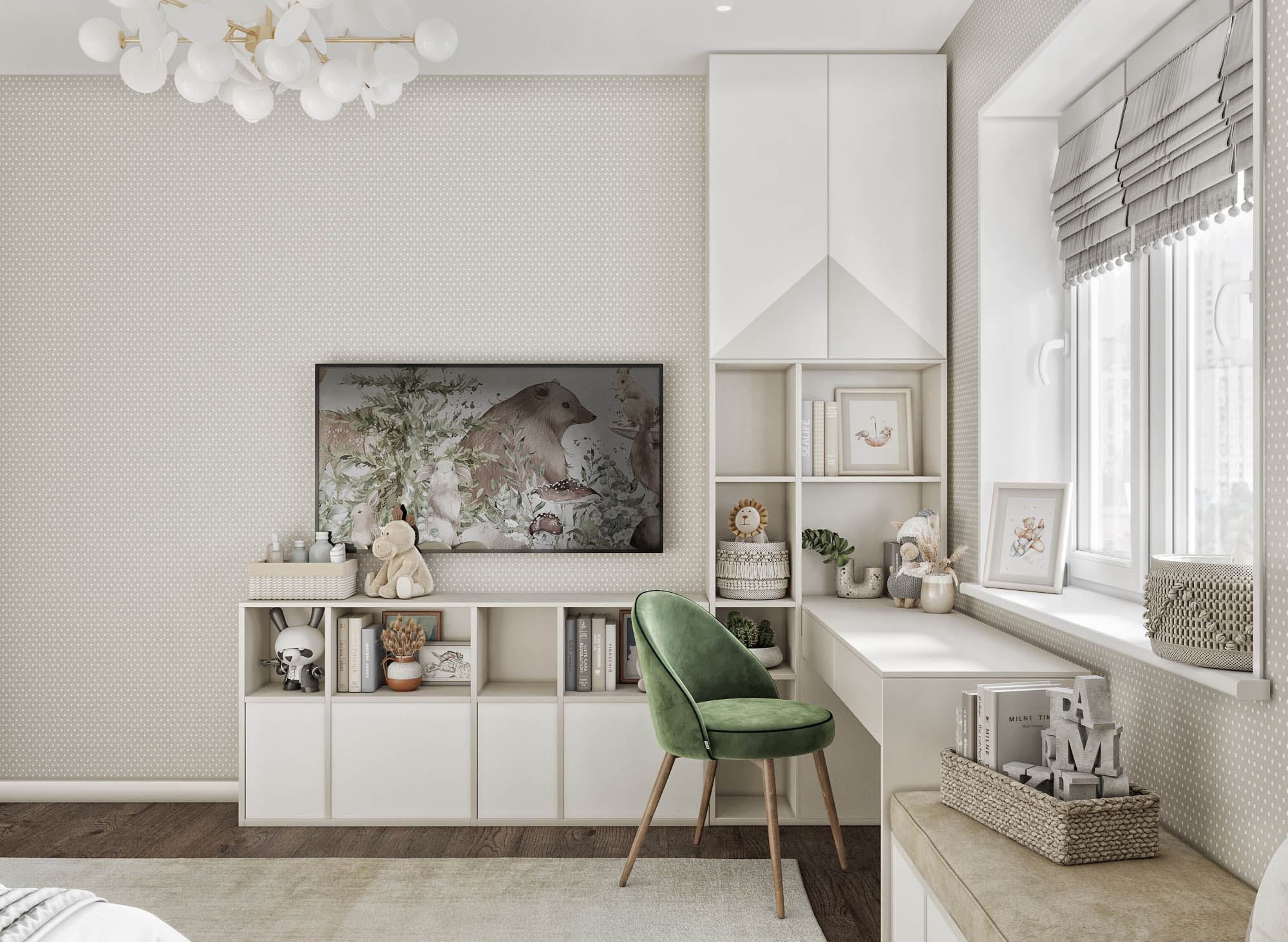 Владельцы квартиры - молодая семья, которая только планирует деток. А поскольку пол, естественно, заранее неизвестен, детская была разработана в универсальном дизайне, который подойдёт как для юного сорванца, так и маленькой принцессы.