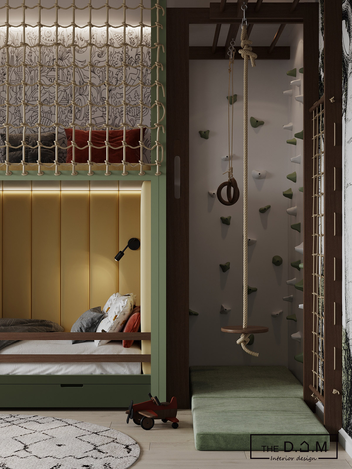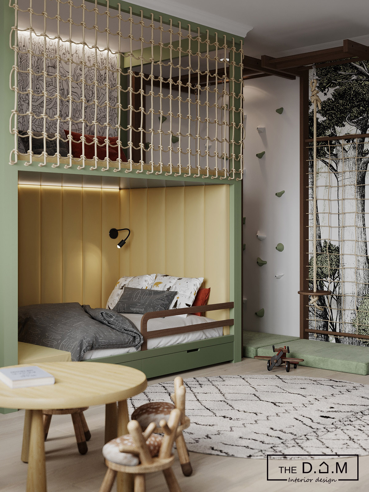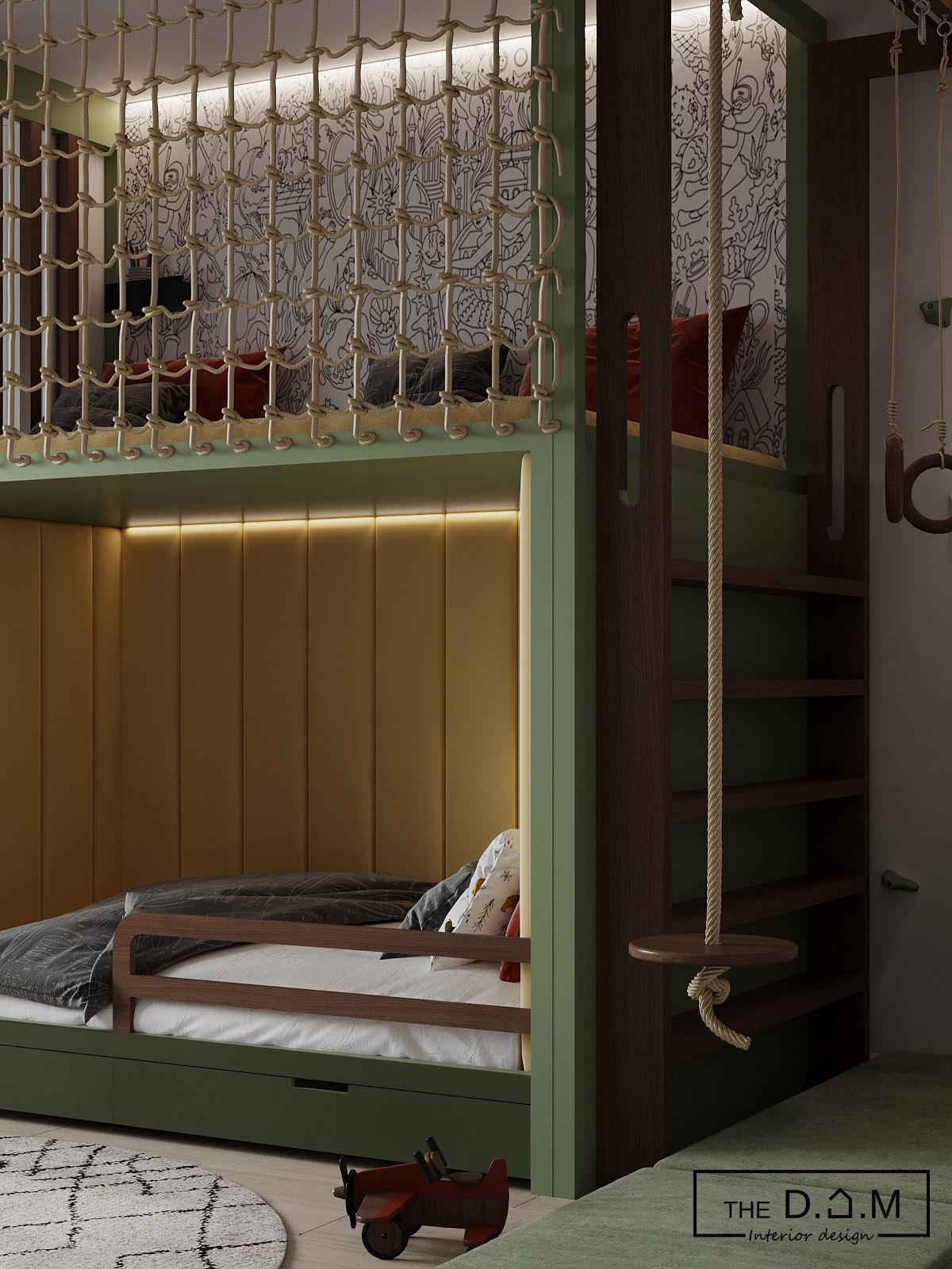 Обязательным было использование природных текстур оттенков и материалов. Изюминкой данной детской стали обои с необъятными баобабами из коллекции «Zoo».