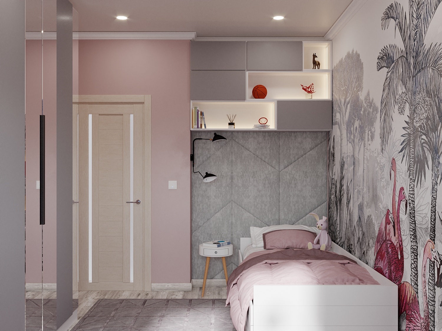 Девочка любит розовый, все девчачье и рисовать, творческая натура. Поэтому панно выбрано в розовых тонах с графичным изображением. Все остались в восторге!