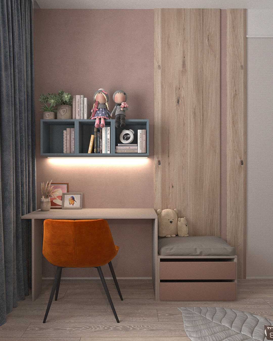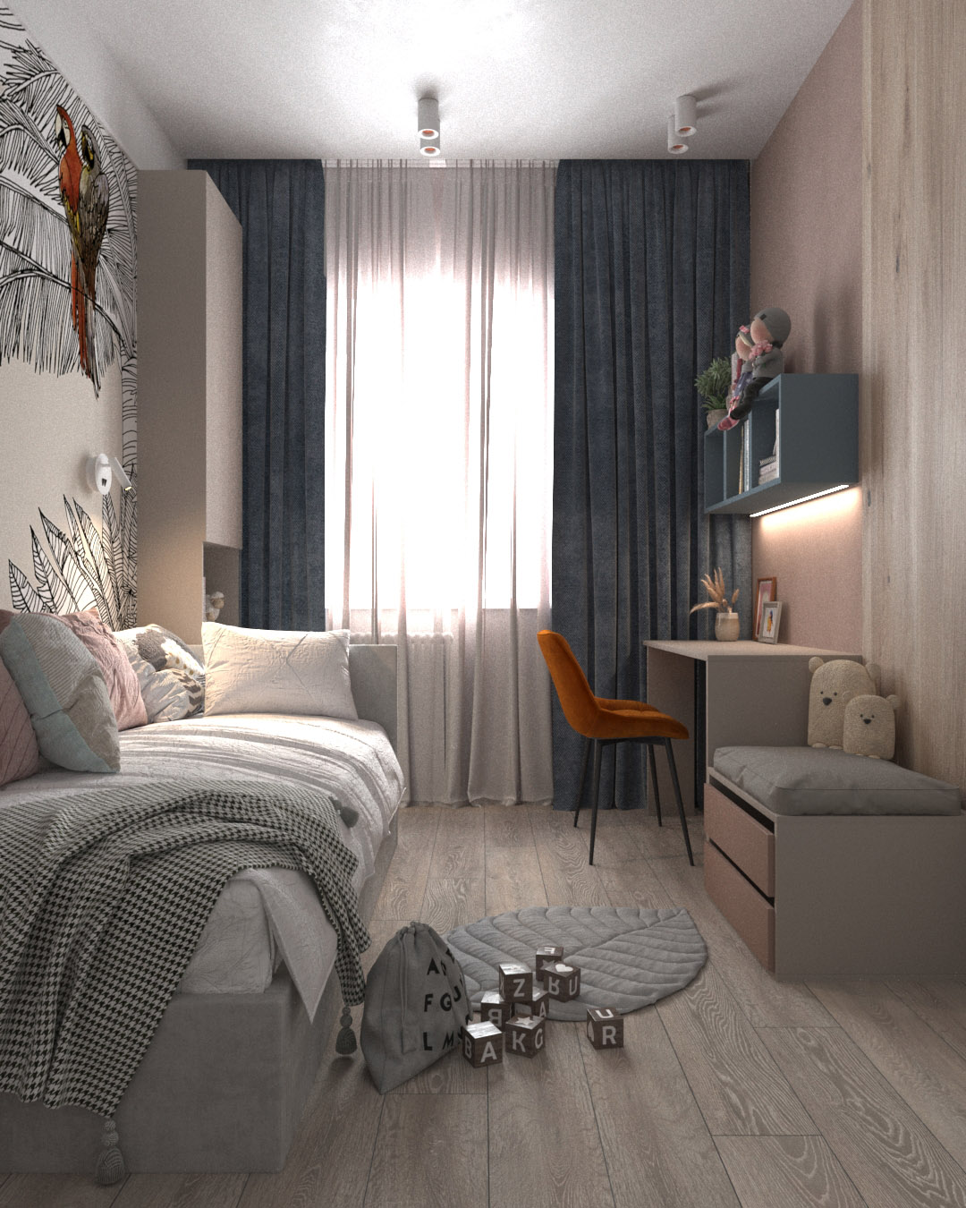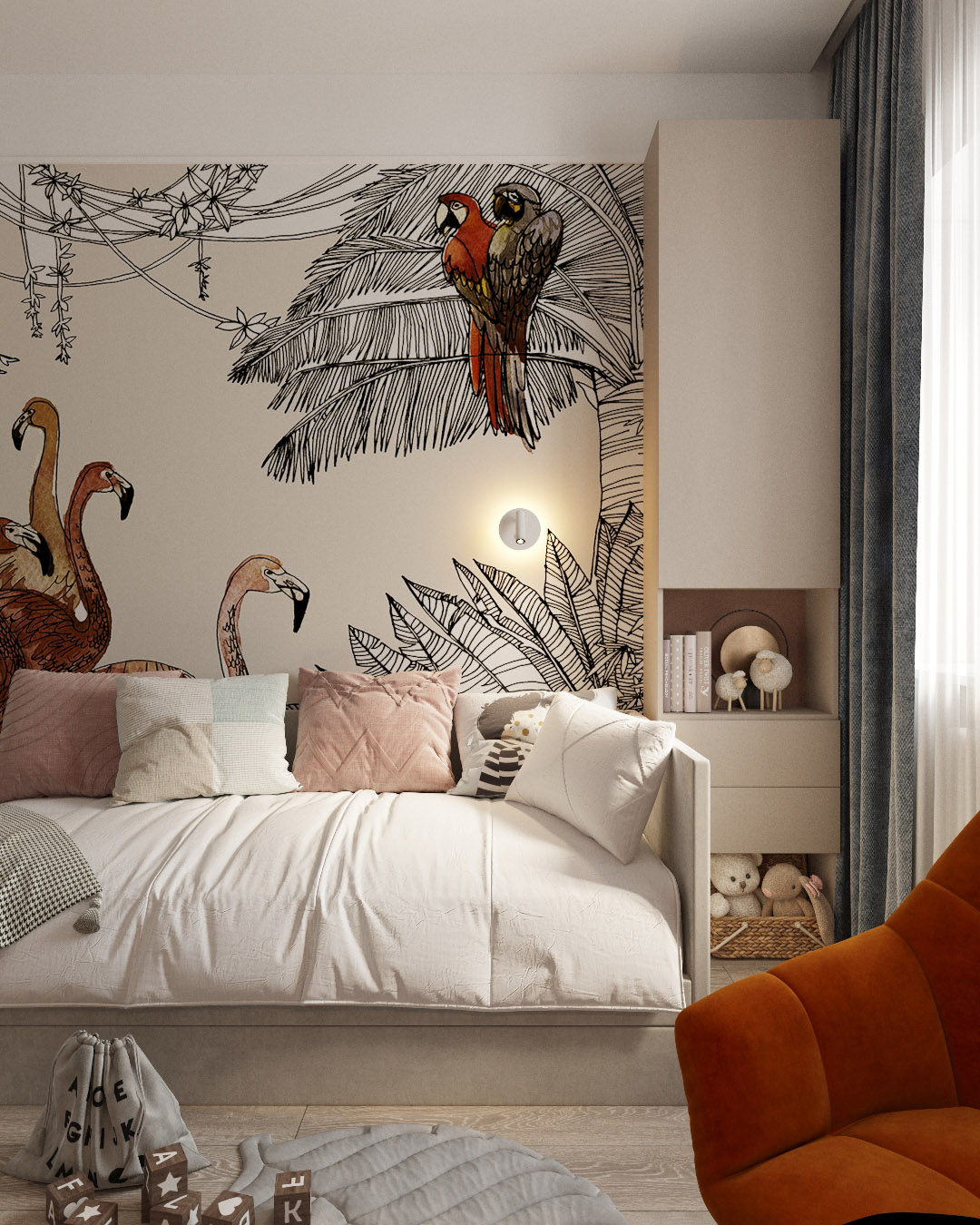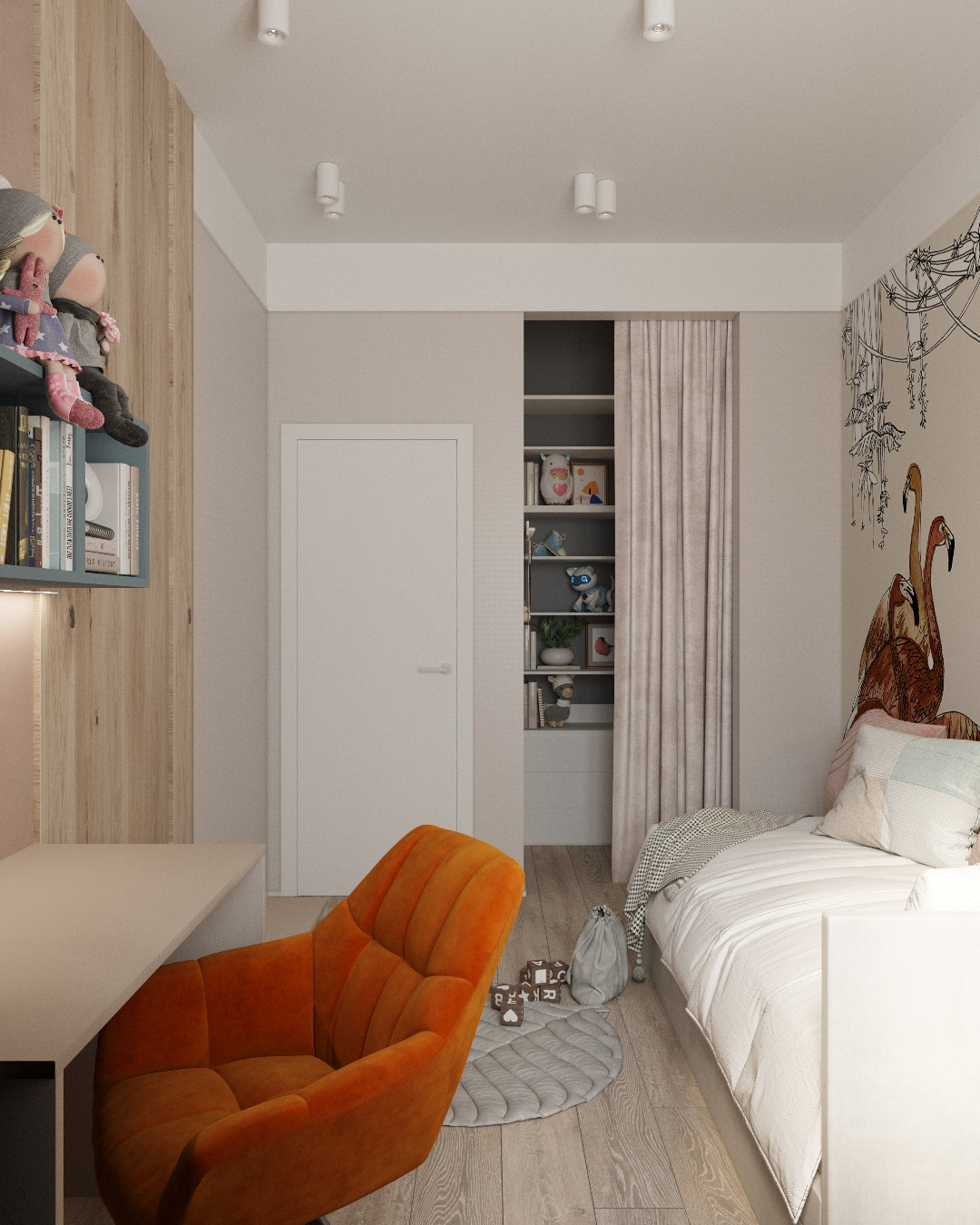 Крошечная, но милая детская для юной жительницы города Нижний Новгород. Площадь комнаты — всего 10 м². Обои из коллекции «Zoo». С ее помощью в детской может развернуться настоящий зоопарк! Яркие розовые фламинго, семейство леопардов и интересующиеся зебры обязательно понравятся юным искателям приключений и откроют детям новый загадочный мир!