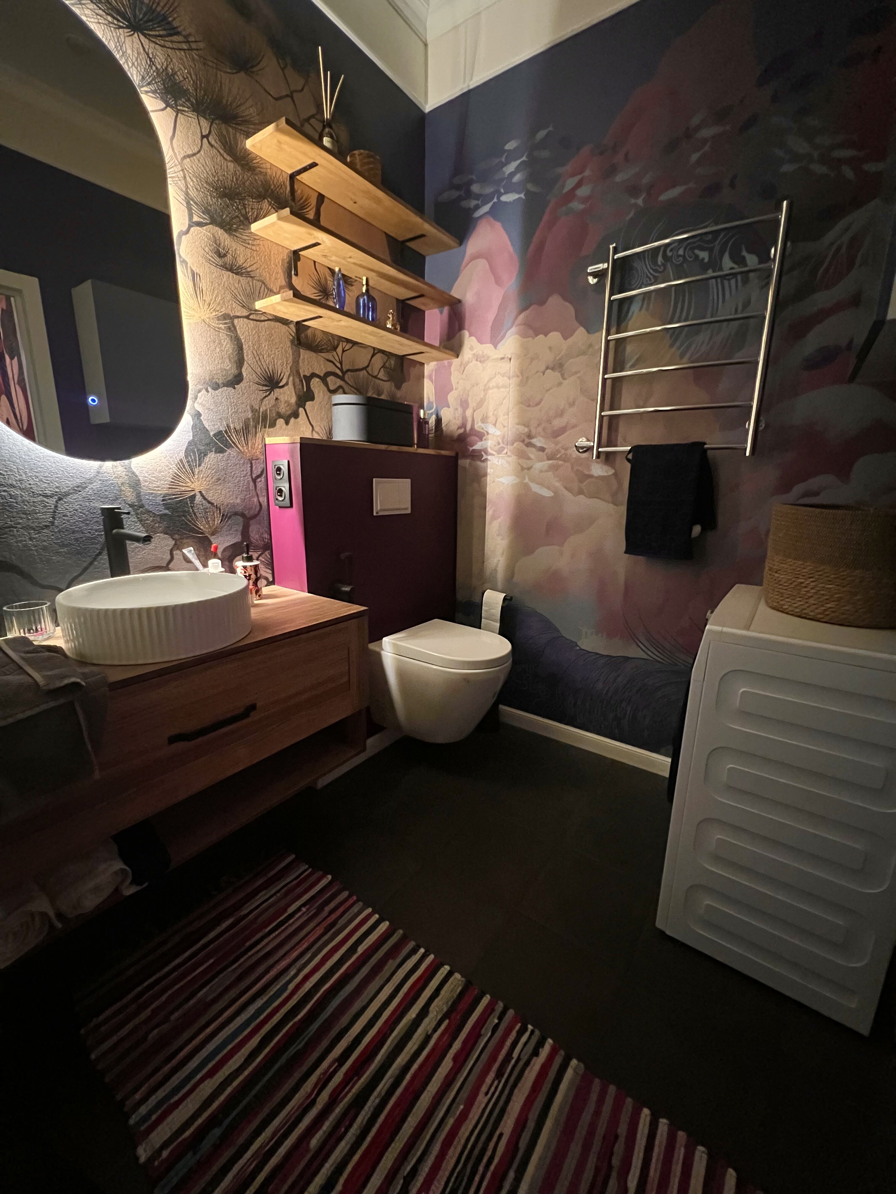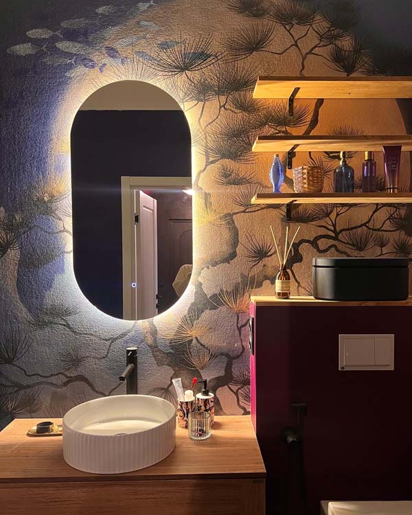 А в санузле Екатерина соединила два изображения из той же коллекции BUSIDO, чтобы создать яркий вау-эффект.