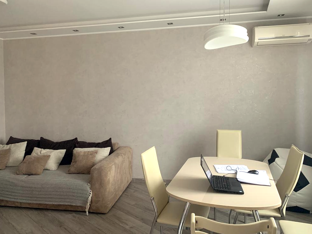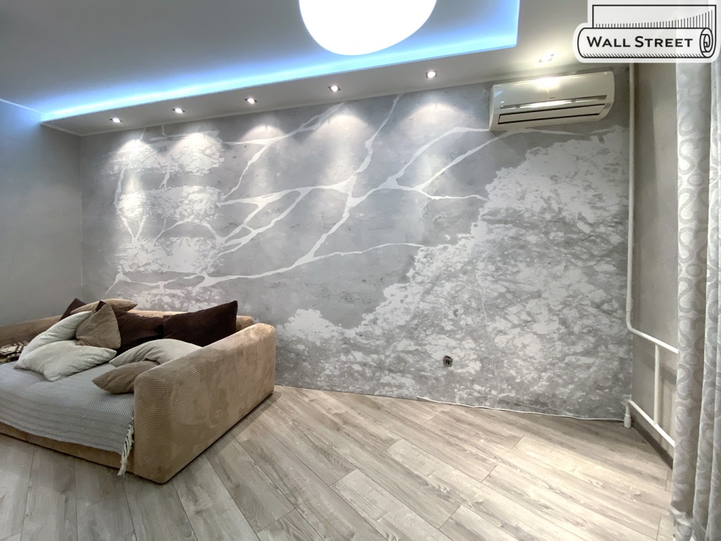Кстати, материал для нанесения выбрали «Сицилия». И не прогадали: в итоге фреска очень гармонично вписалась в существующий интерьер.
