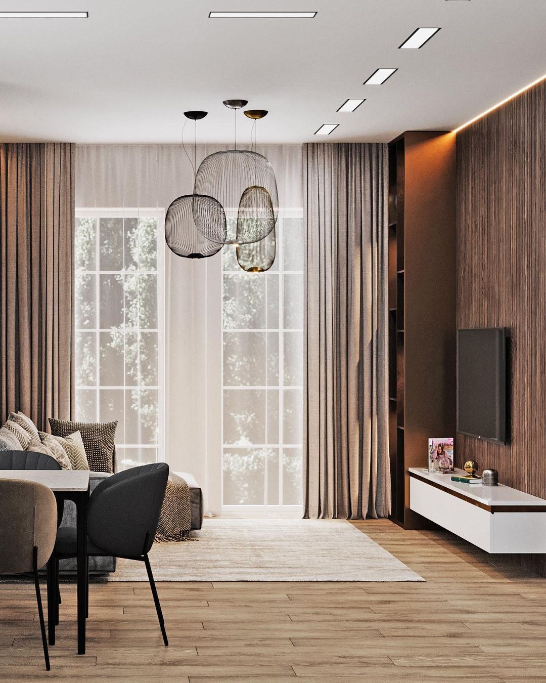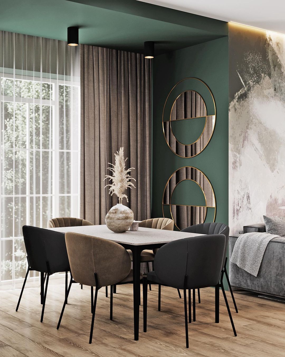 «Это проект кухни-гостиной. Заказчик, обратившийся ко мне, изначально сразу попросил повторить мой предыдущий проект, в котором также были использованы обои из коллекции «Alive». Эта серия обоев полюбилась многим моим заказчикам, — рассказывает автор этого проекта Наталья, — Естественно, повторить интерьер один в один я не могла, но использовала похожую цветовую гамму и, конечно же, коллекцию «Alive».