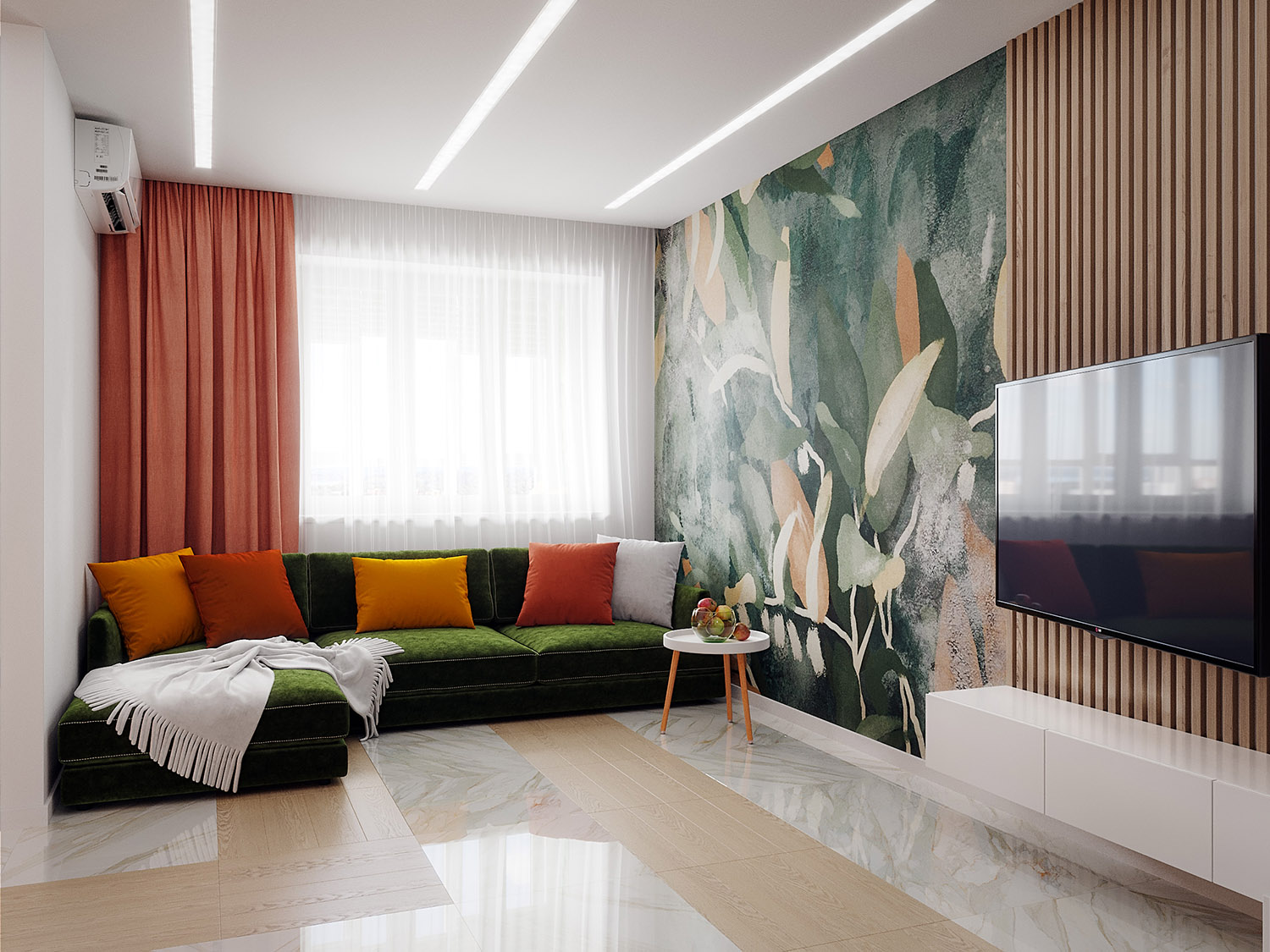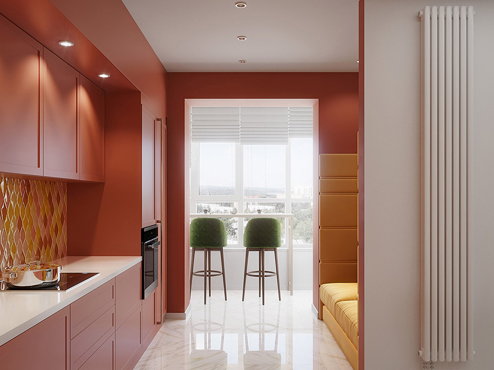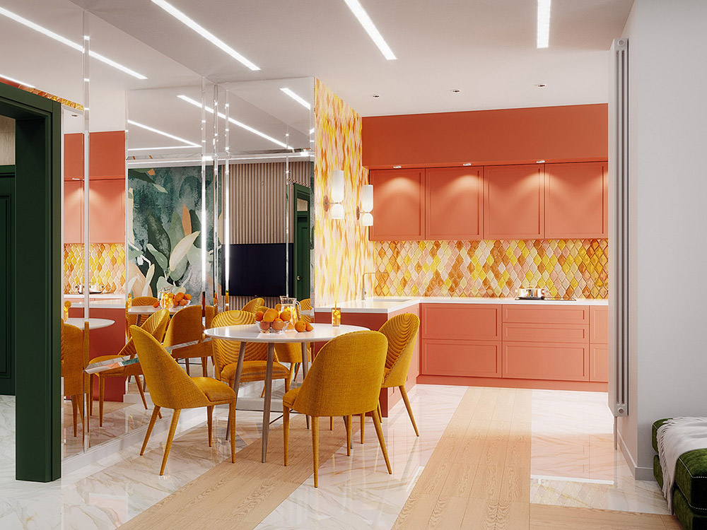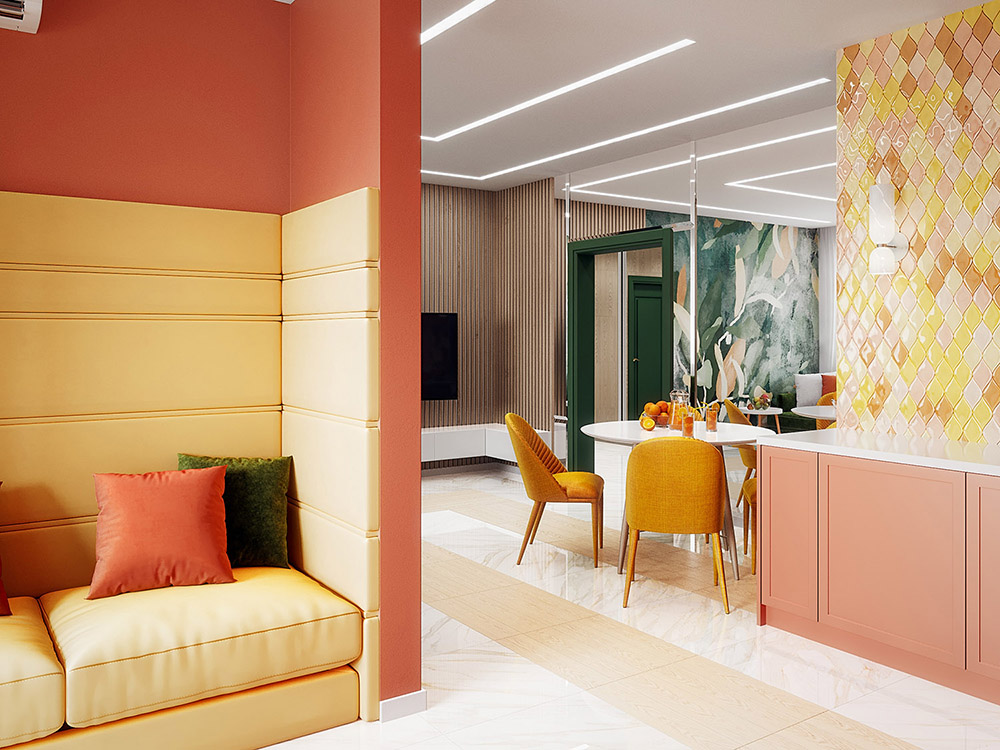 Яркая кухня-гостиная с обоями «Alive»