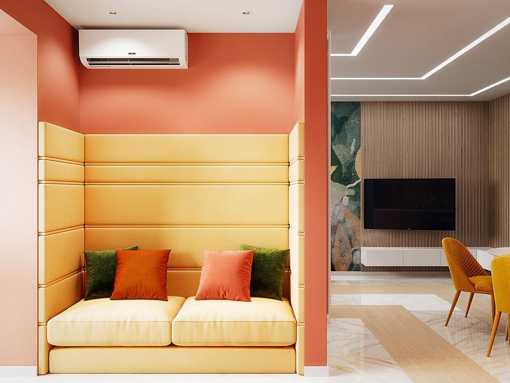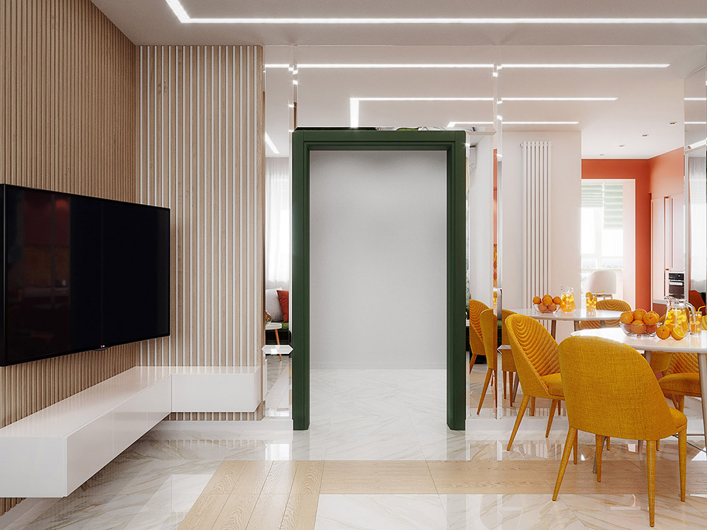 Московские заказчики, купив квартиру 77 м² в городе Краснодар и заказывая дизайн-проект у Евгении, сразу сказали: «Мы любим яркое!»