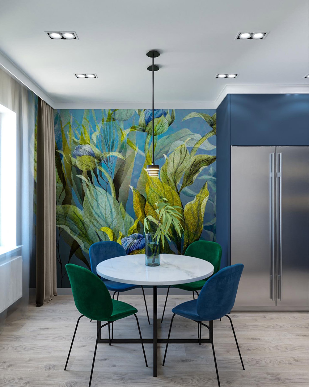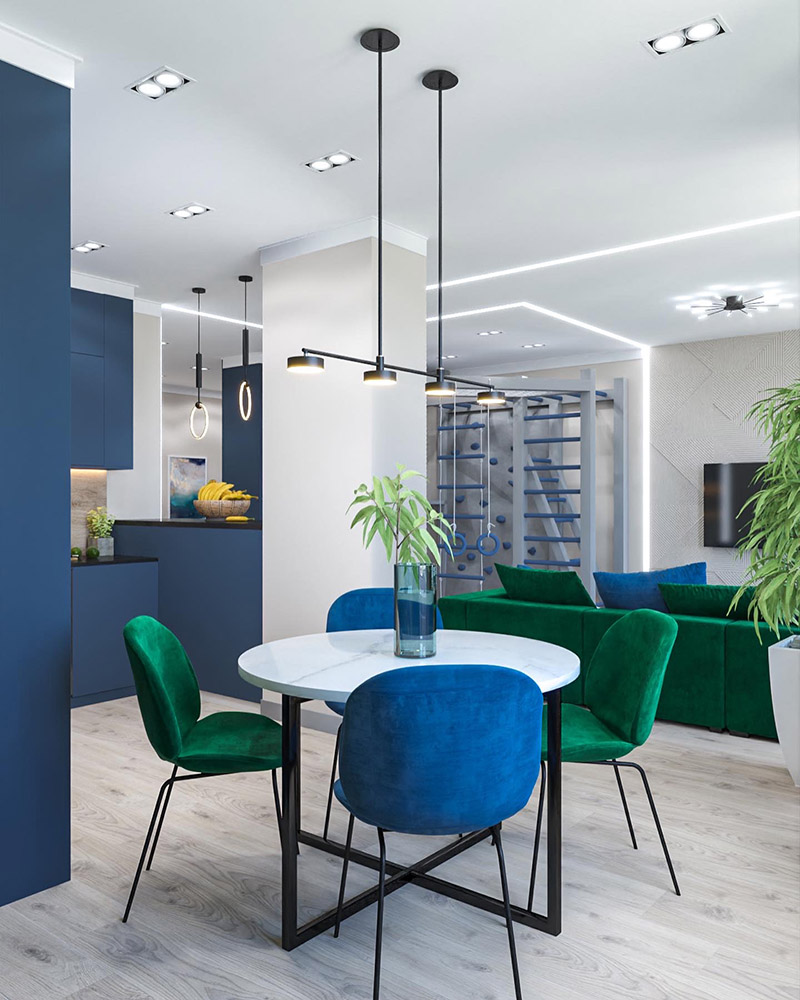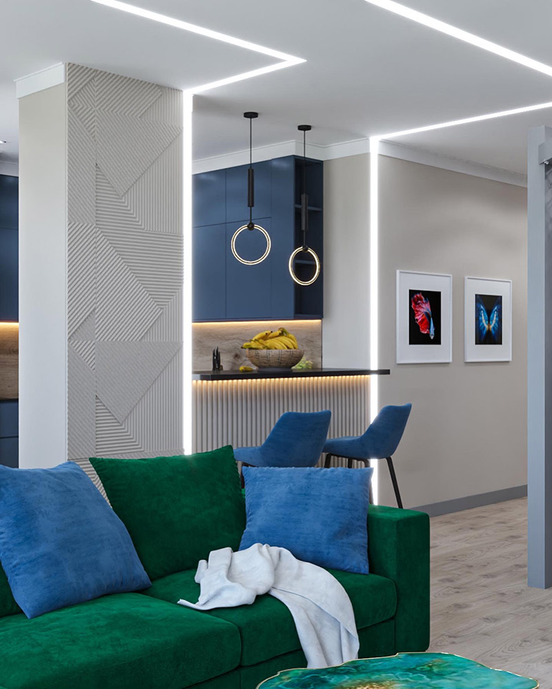 Проект разработан для смелой семейной пары, которые на стадии замера попросили сделать все ярко! Квартира находится в г.Челябинск. Площадь квартиры 80 м². Разработка проекта складывалась легко, скоро начнём реализацию этой яркой квартиры! Обои выбраны из коллекции «Aqua De Vida».