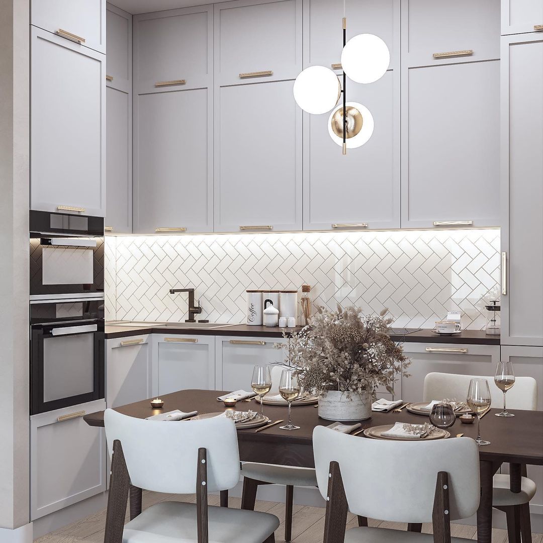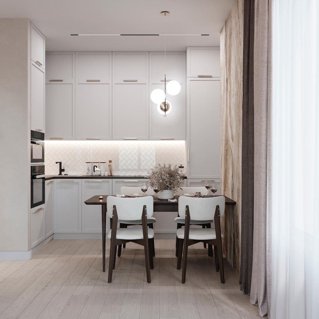 В проекте использовались обои «под камень» в обеденной зоне из коллекции «Elegant 20».