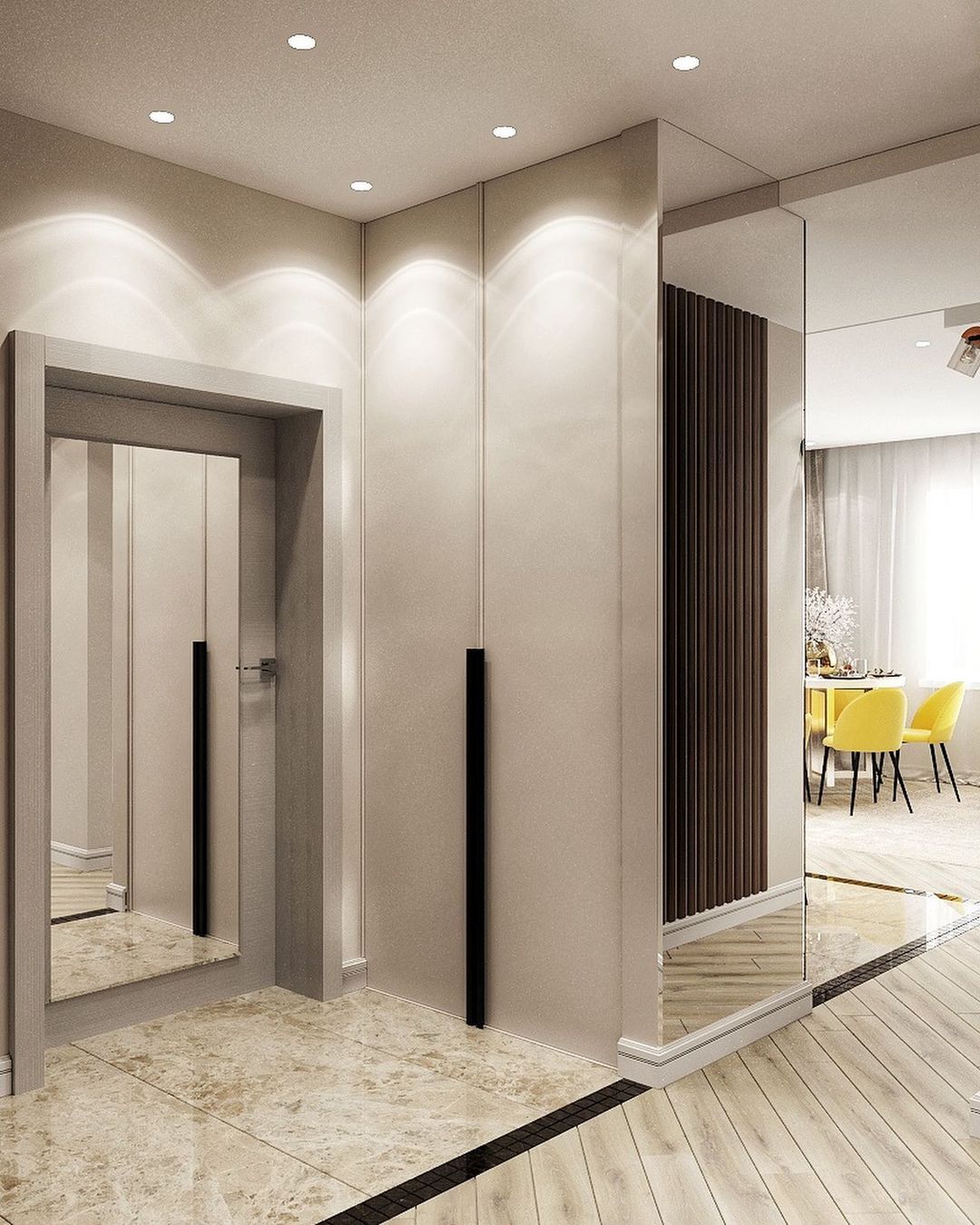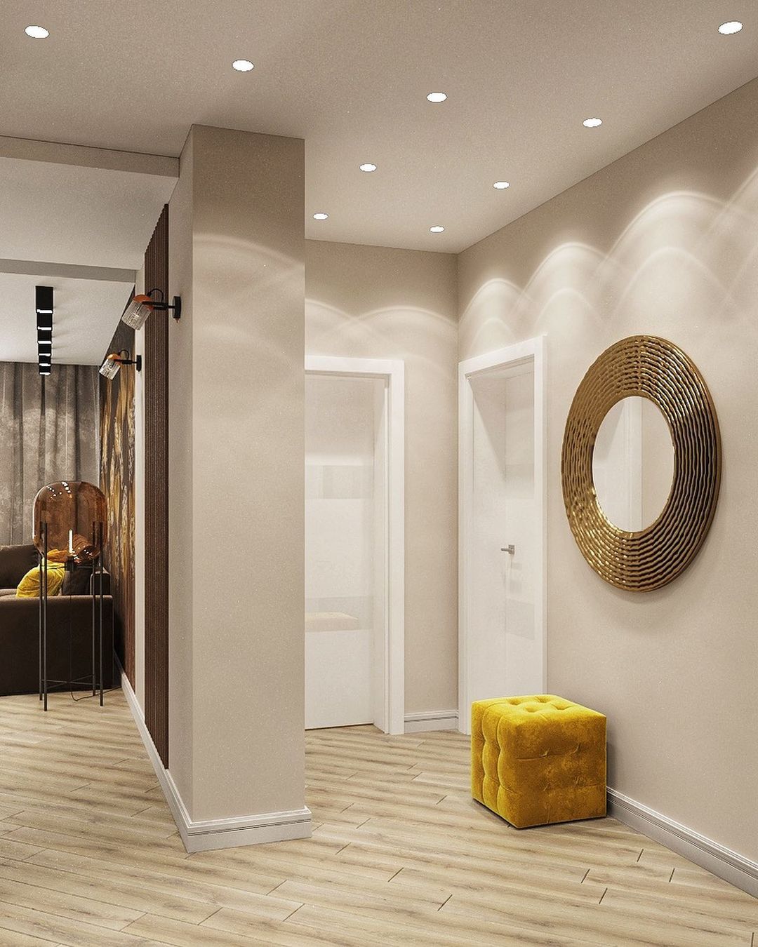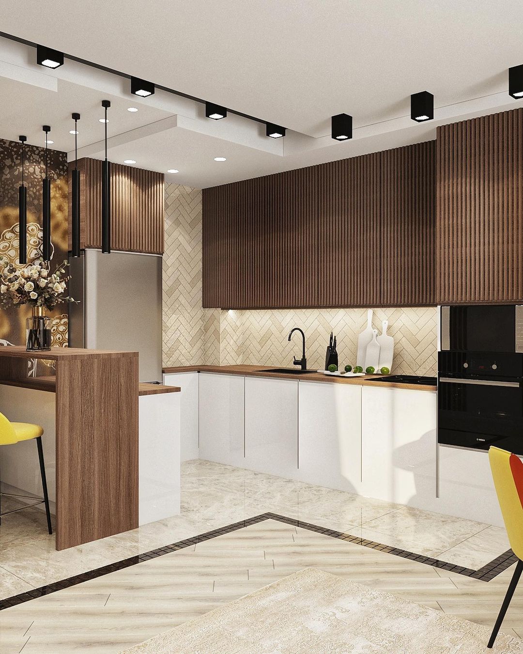 Основной задачей было объединить зону кухни и гостиной. Интерьер должен быть в тёплых тонах, но обязательно иметь индивидуальность, быть ярким и запоминающимся. В проект были выбраны обои из коллекции «Essence». И, кстати, это пространство изначально задумывалось с перспективой расширения семьи.