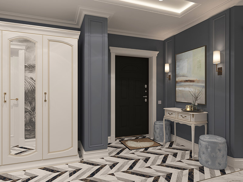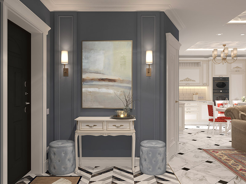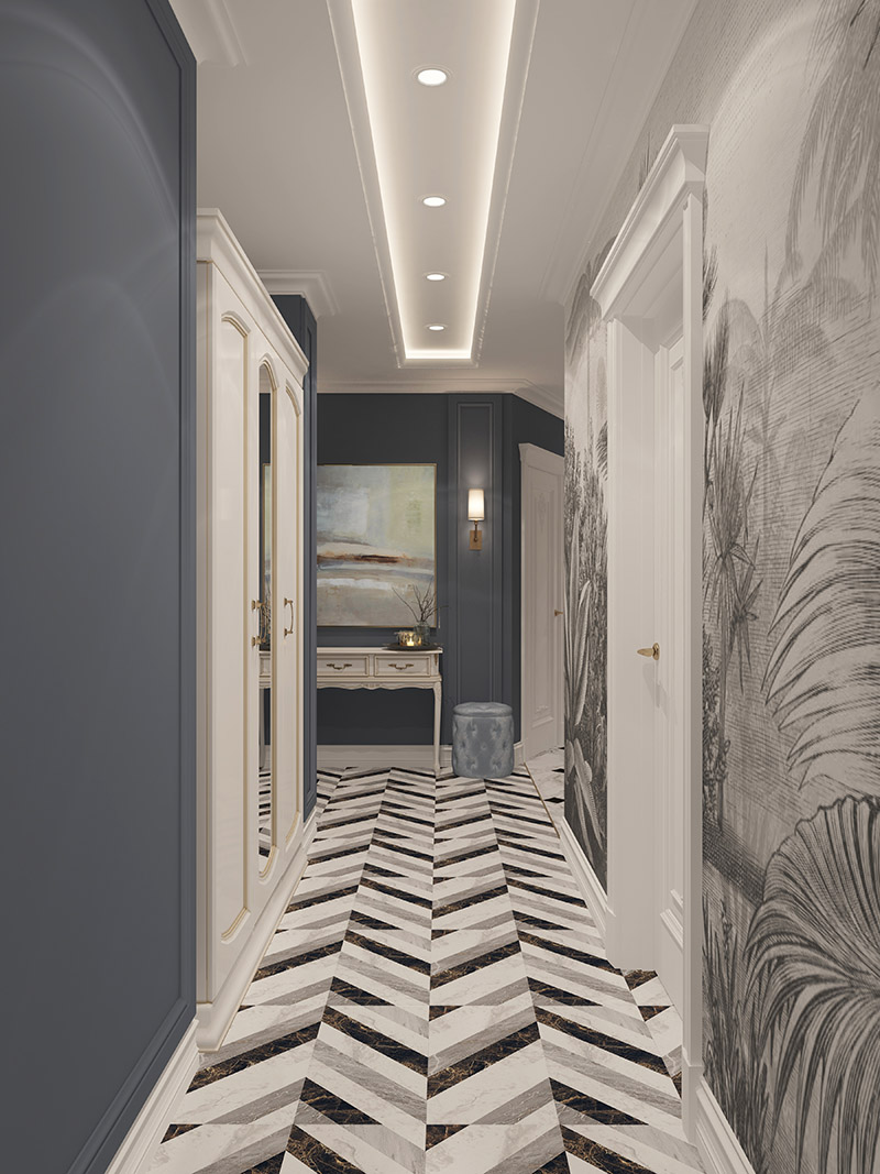 Дизайн-проект квартиры для прекрасной семьи в ЖК «Лесопарковый» г.Челябинск. Площадь помещения 85,4 м². Проект создан в классическом стиле, с элементами лепного декора. Главной задачей было вписать уже приобретенную часть мебели в новый интерьер.