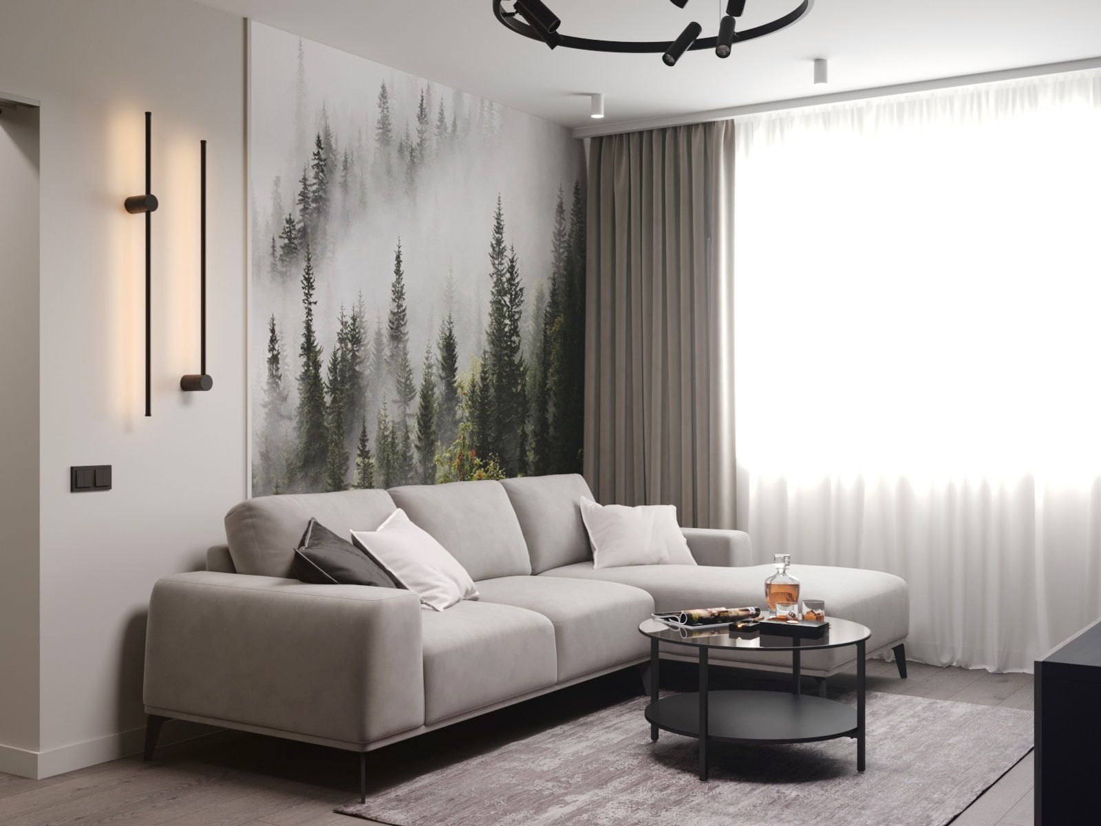 Это проект гостиной от дизайнера Алёны Сухих. Фреска из коллекции «Frame-2019».
