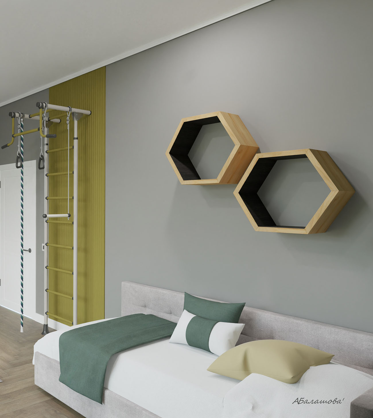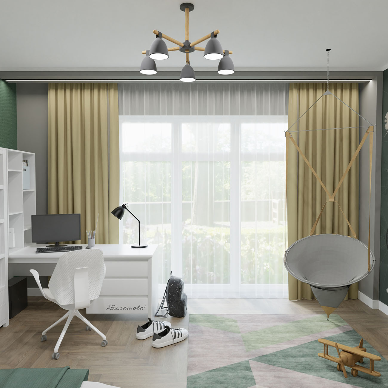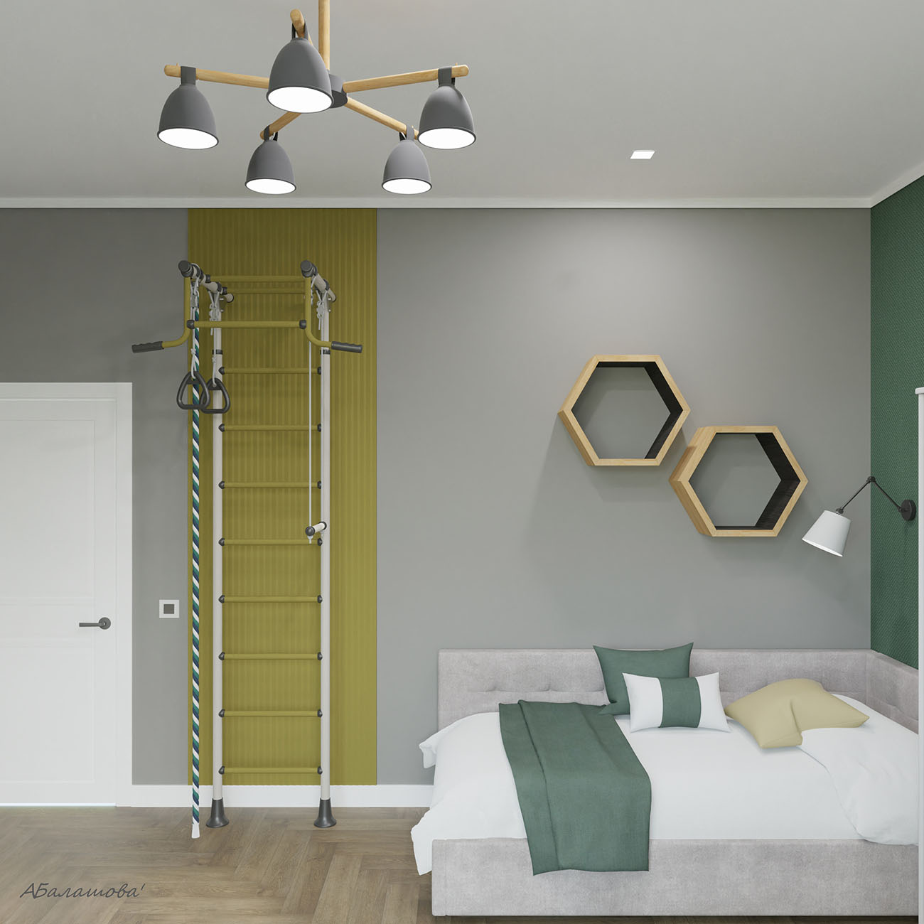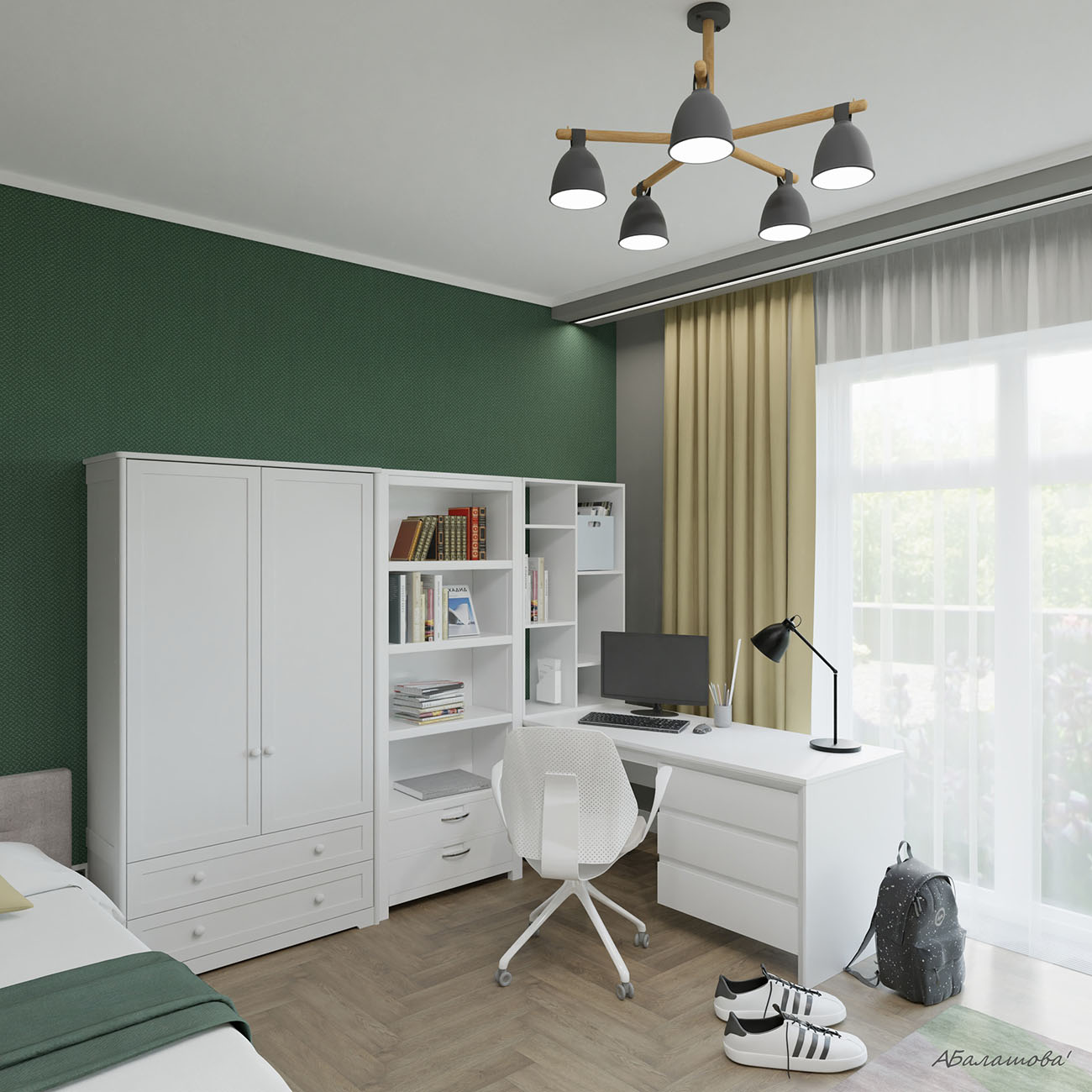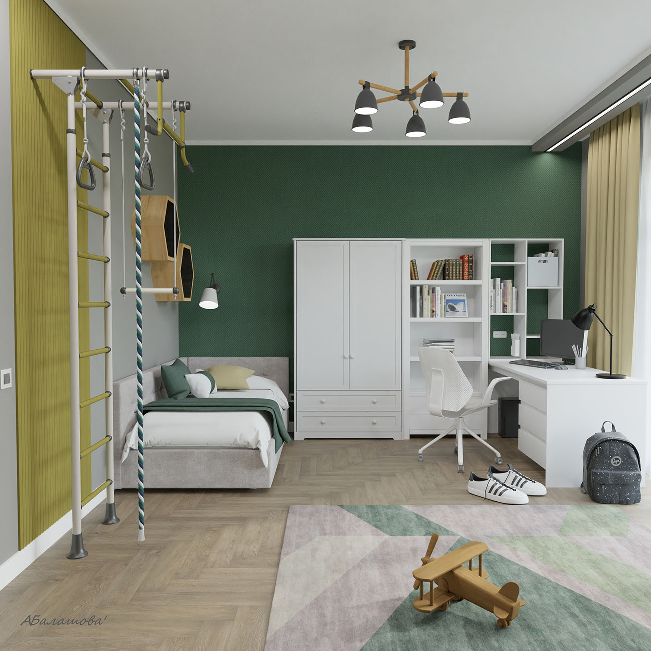 До начала создания проекта клиент уже в целом определился с обоями и мебелью, поэтому основная задача заключалась в том, чтобы гармонично все сочеталось в интерьере: все выбранные материалы и предметы мебели. Также одной из задач было органично расставить мебель для комфортного проживания мальчика школьного возраста.