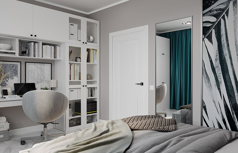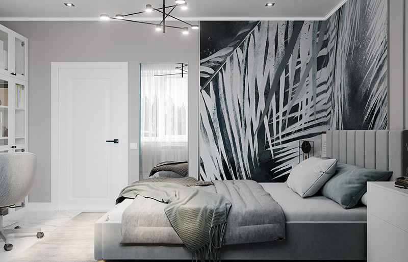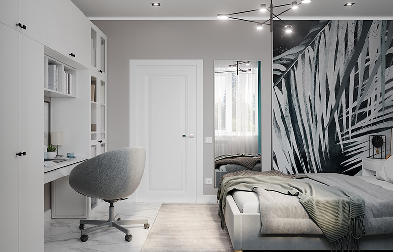 Это детская из того же проекта для второй сестры. Поскольку сестры примерно одного возраста, то частично меблировка и освещение совпадают (по просьбе заказчиков, чтобы избежать конфликтов). Но все равно комнаты получились совсем разные. Главным акцентом второй комнаты стали обои из коллекции «Alive».