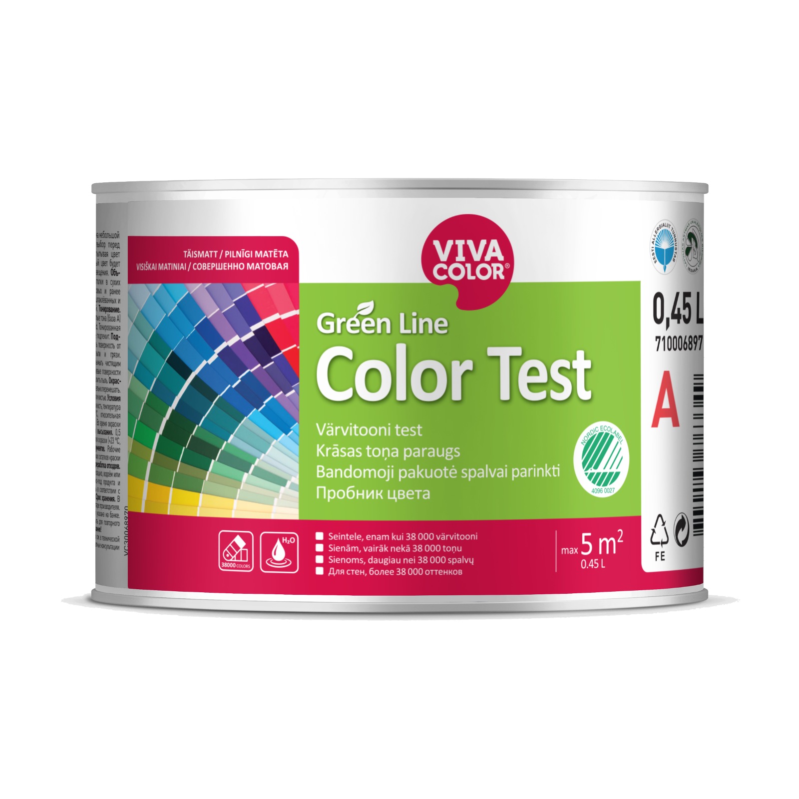 Краска ColorTest позволяет проверить тон на небольшой площади и сделать правильный выбор перед окраской большой поверхности. Проверка тона на стене это лучший способ убедиться, что выбранный тон подходит именно для вашего помещения и типа освещения. Краски Green Line сертифицированы экологическим знаком NordicSwan Ecolabel и одобрены союзом по астме и аллергии. Продукты содержат минимальное количество летучих органических соединений (ЛОС).