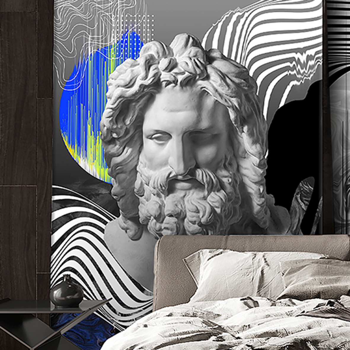 - Адаптация изображения под размер вашей стены с учетом расстановки мебели