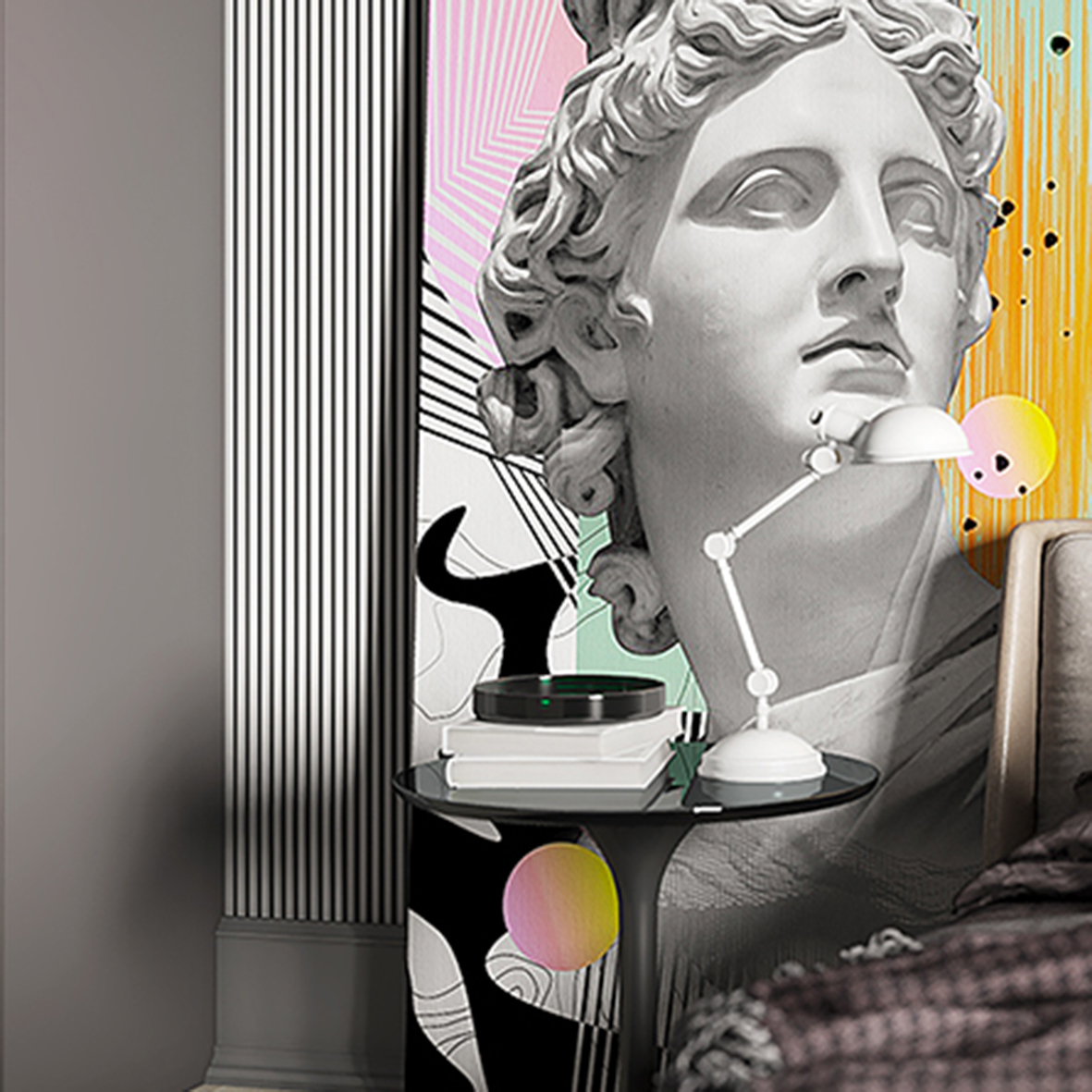 - Адаптация изображения под размер вашей стены с учетом расстановки мебели