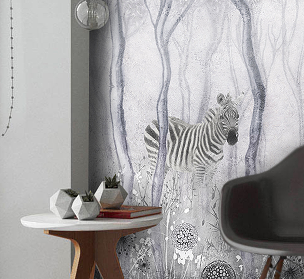 Обои из коллекций Wall Street в трех комнатах: EUPHORIA 22 в гостиной, Zoo в детской комнате, а в спальне Selva