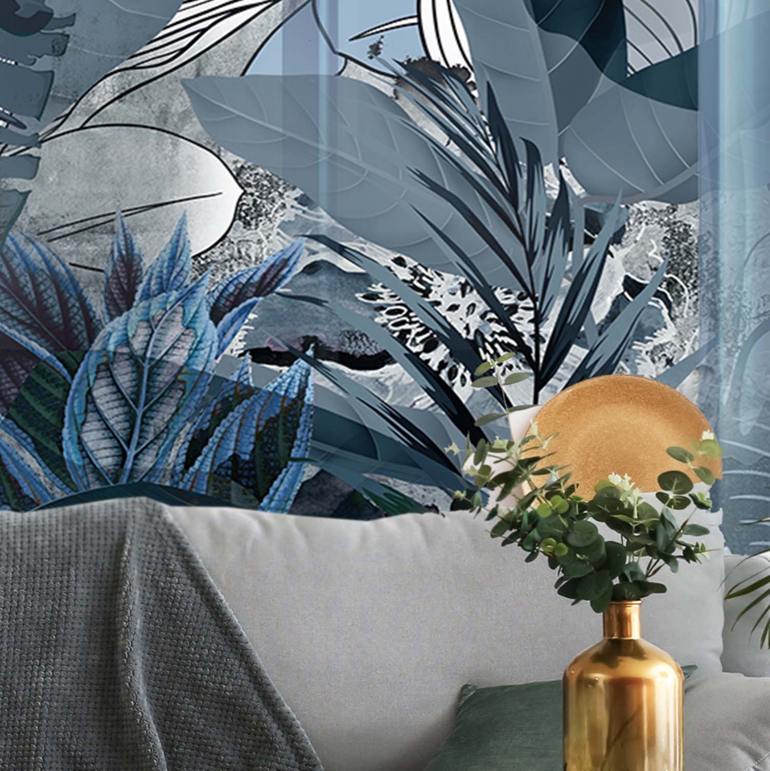 - Адаптация изображения под размер вашей стены с учетом расстановки мебели