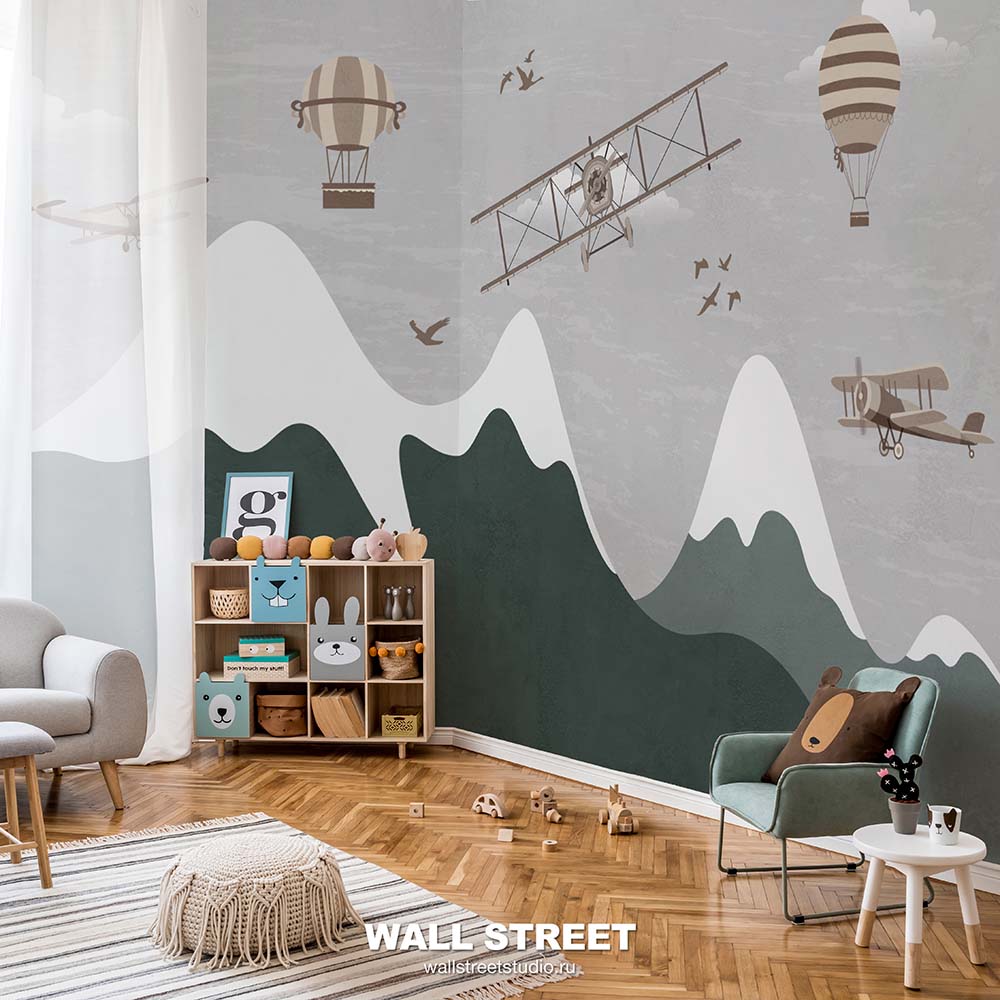 Обои из коллекций Wall Street в трех комнатах: EUPHORIA 22 в гостиной, Zoo в детской комнате, а в спальне Selva