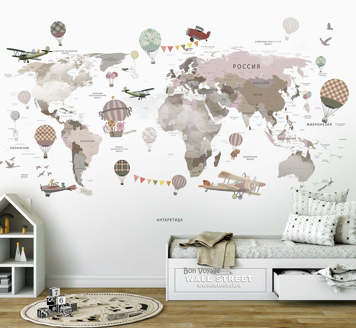 - Адаптация изображения под размер вашей стены с учетом расстановки мебели