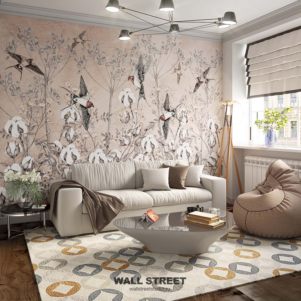 - Адаптация изображения под размер вашей стены с учетом расстановки мебели