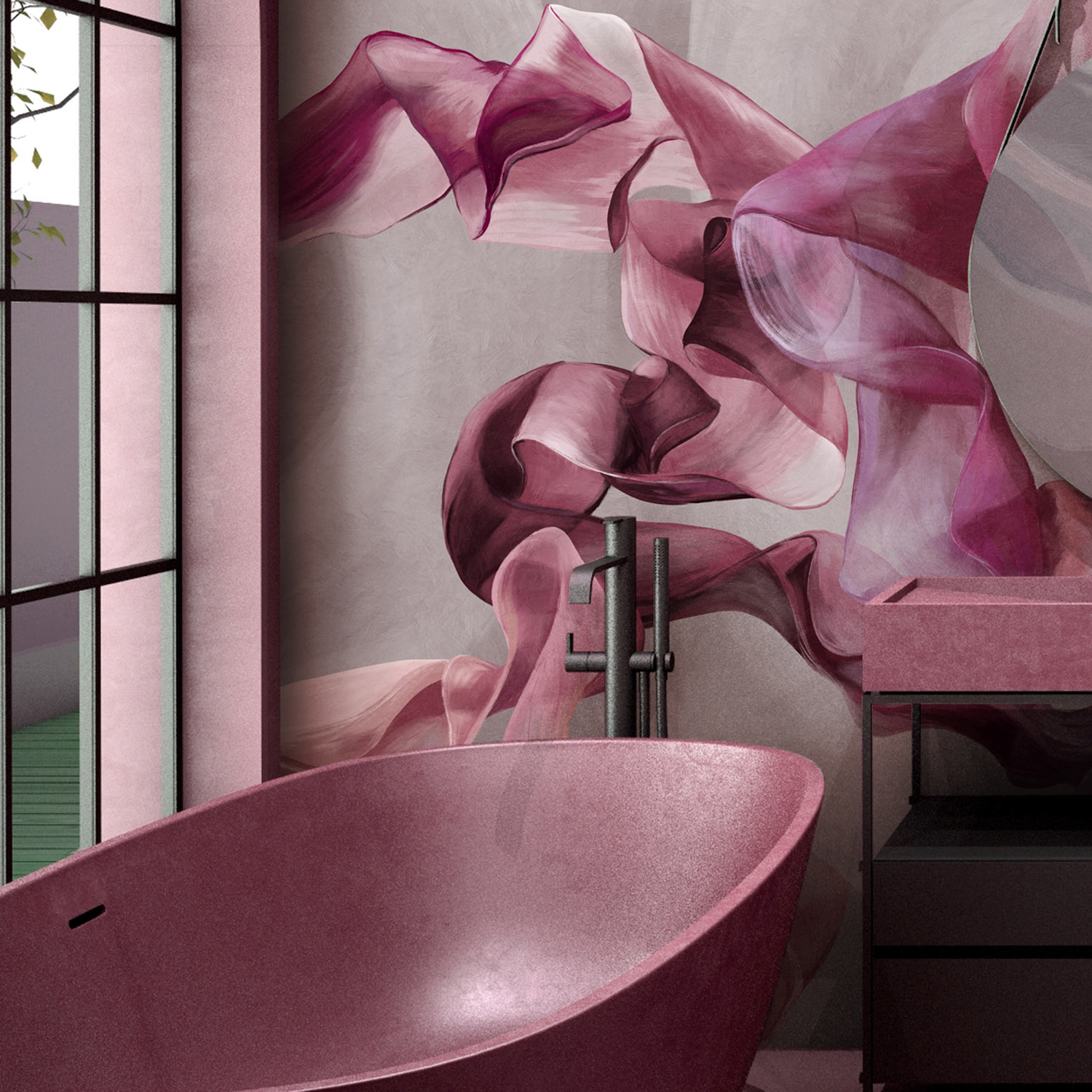 - Адаптация изображения под размер вашей стены с учетом расстановки мебели