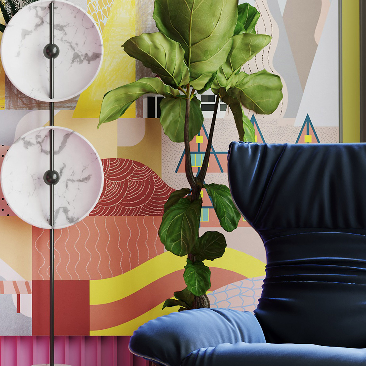 - Адаптация изображения под размер вашей стены с учетом расстановки мебели