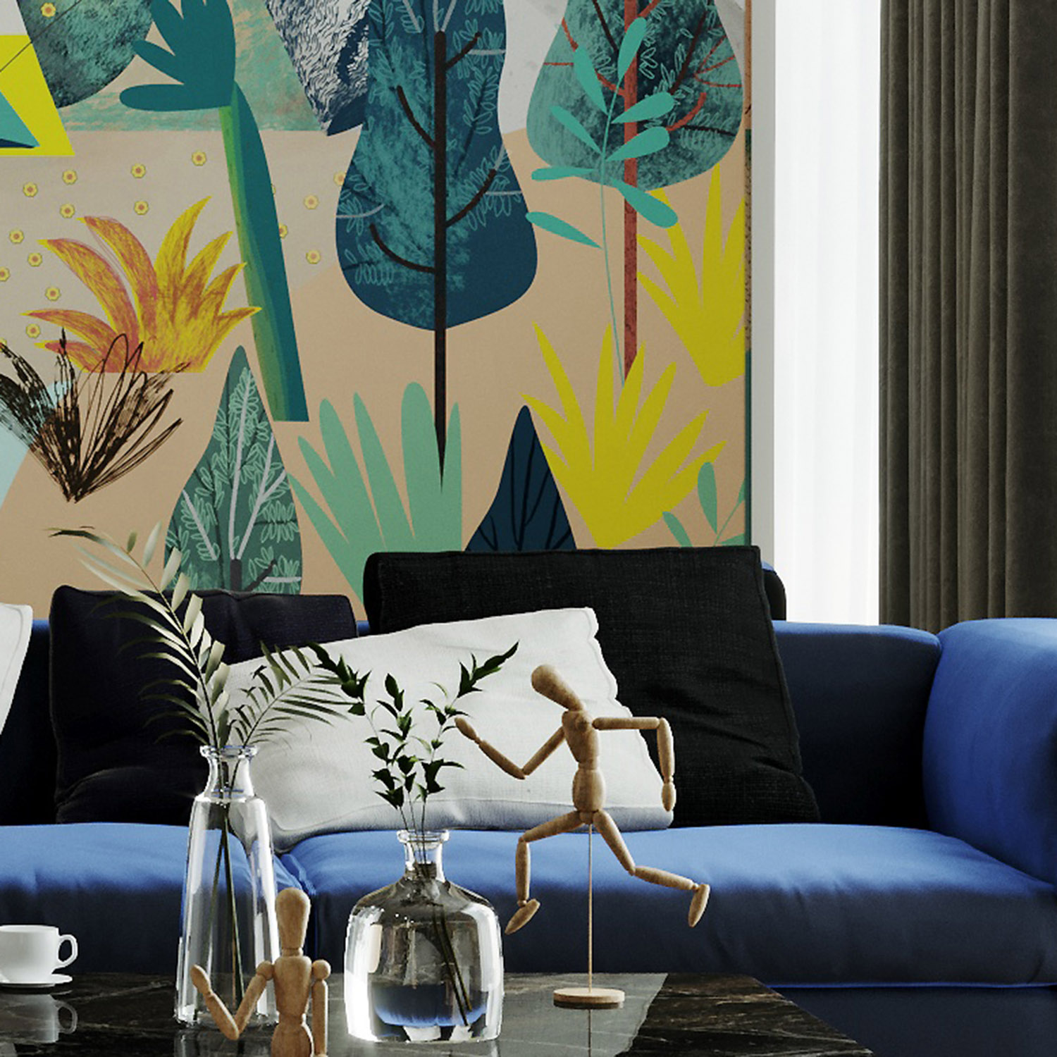 - Адаптация изображения под размер вашей стены с учетом расстановки мебели