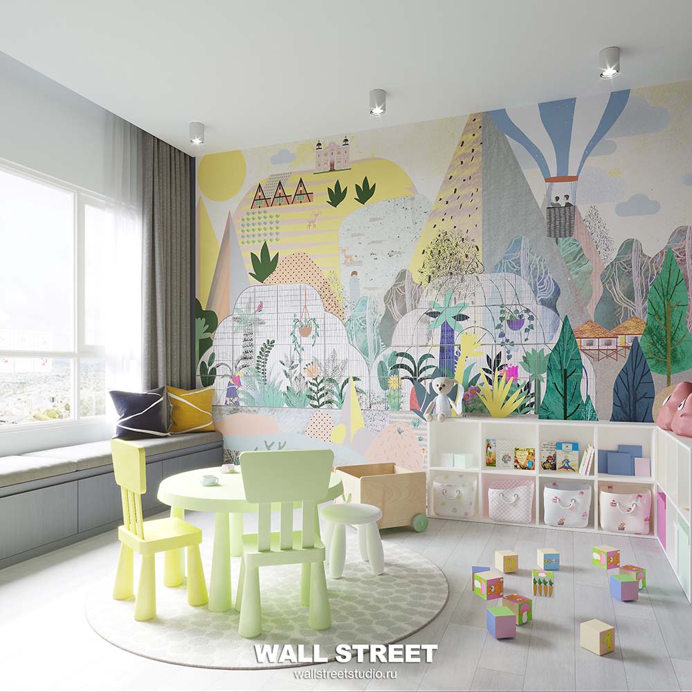 Обои из коллекций Wall Street в трех комнатах: EUPHORIA 22 в гостиной, Zoo в детской комнате, а в спальне Selva