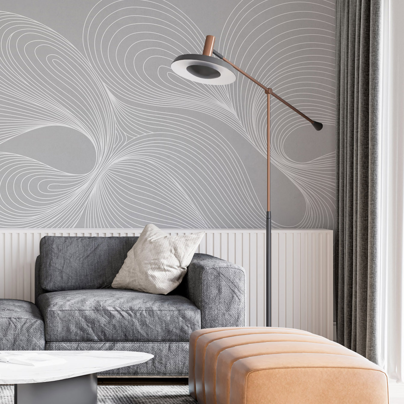 - Адаптация изображения под размер вашей стены с учетом расстановки мебели
