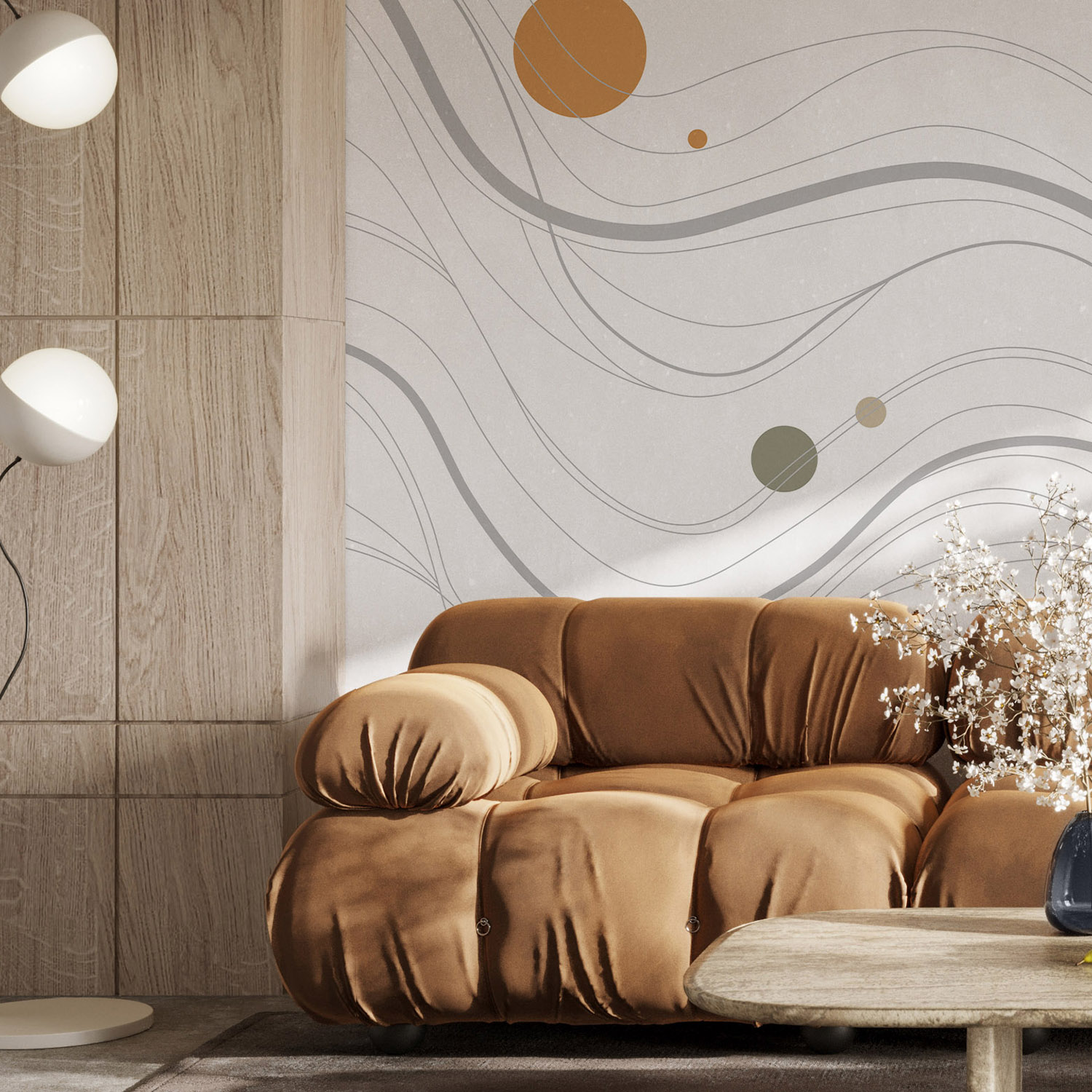 - Адаптация изображения под размер вашей стены с учетом расстановки мебели