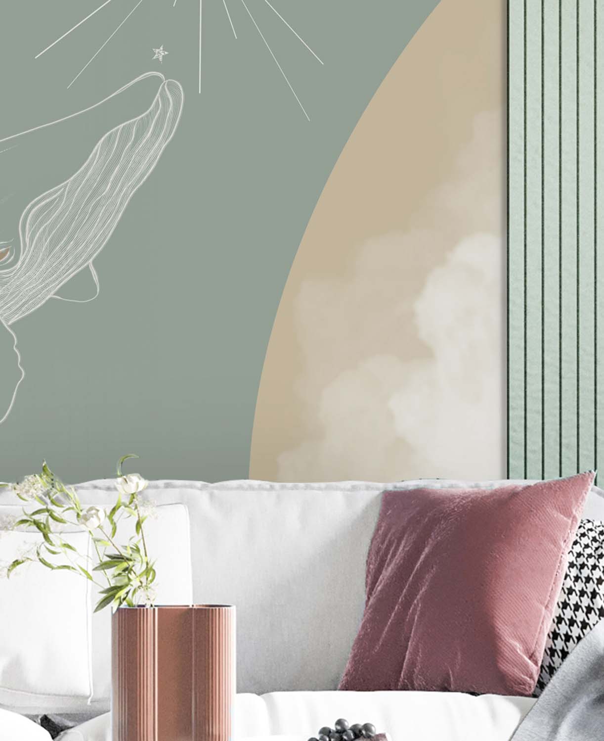 - Адаптация изображения под размер вашей стены с учетом расстановки мебели
