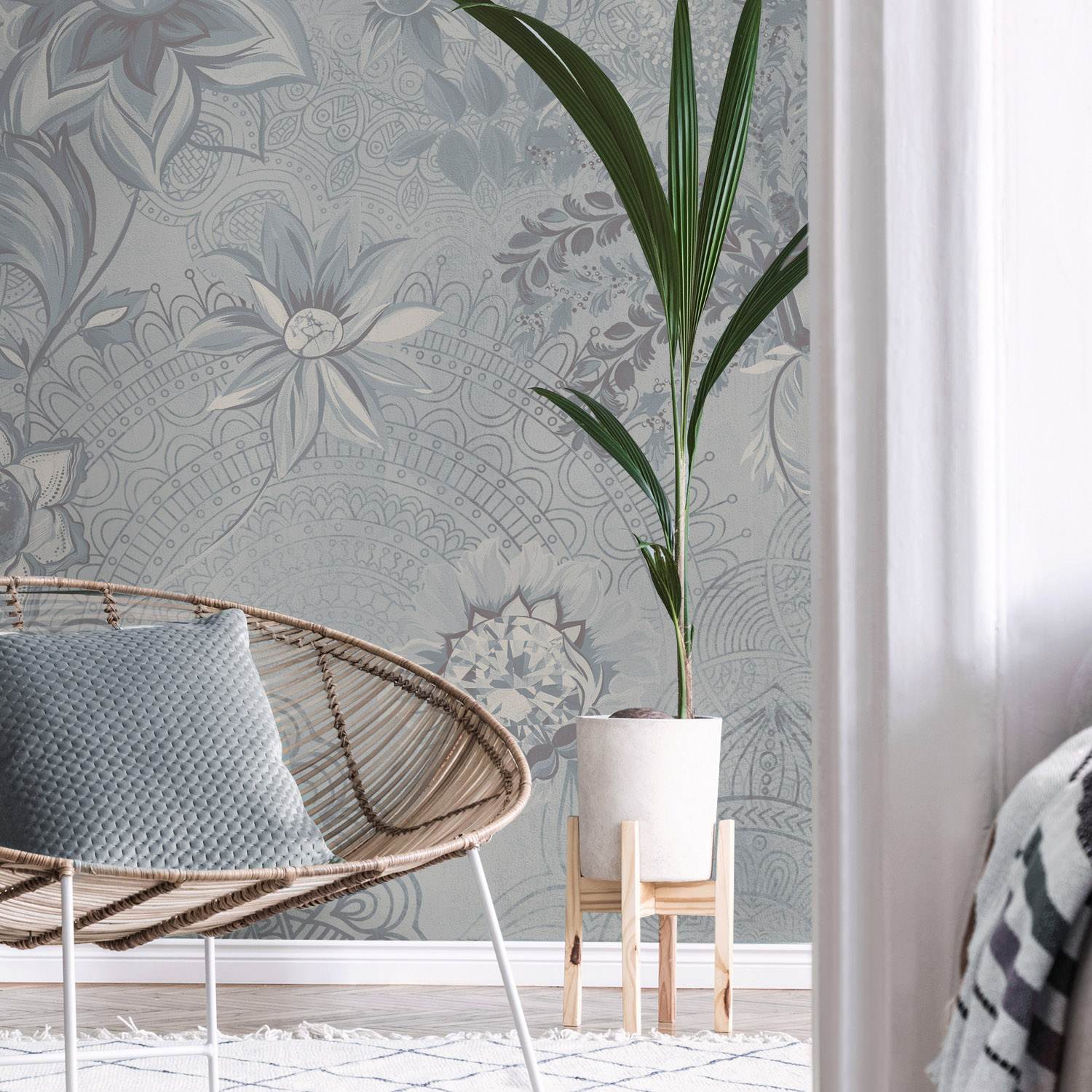 - Адаптация изображения под размер вашей стены с учетом расстановки мебели