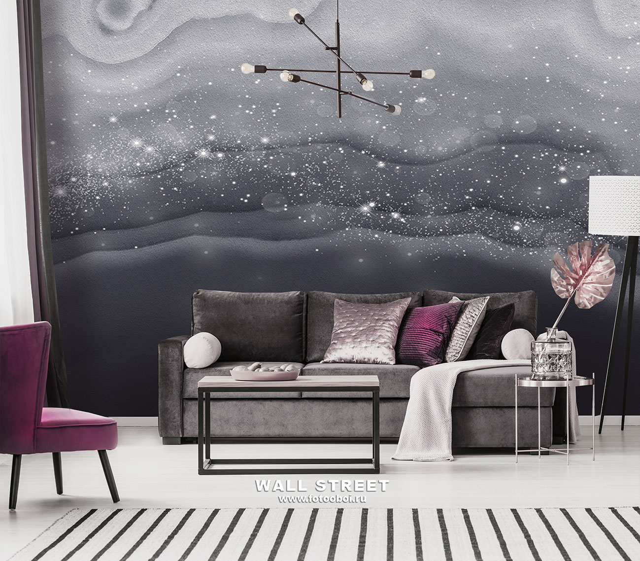 - Адаптация изображения под размер вашей стены с учетом расстановки мебели