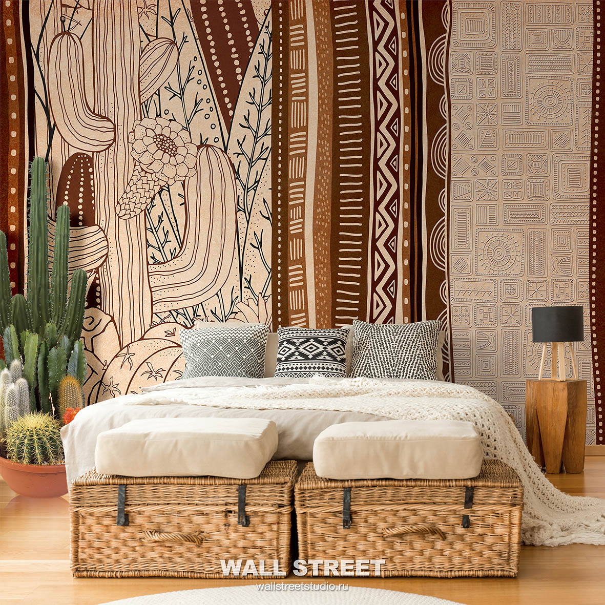 Коллекция обоев «ETHNIC» от компании Wall Street — это стильное решение для оформления интерьера в современном или классическом стиле. Дизайны сочетают гармонию оттенков и текстур, создавая уютную атмосферу и визуальную целостность пространства. Материал устойчив к выгоранию и влаге, легко очищается от бытовых загрязнений без потери внешнего вида. Обои подходят для любых помещений — от жилых до офисных интерьеров, отлично комбинируются между собой и с другими коллекциями. При поклейке рекомендуется использовать качественный клей и стандартную подготовку основания для долговечного результата.