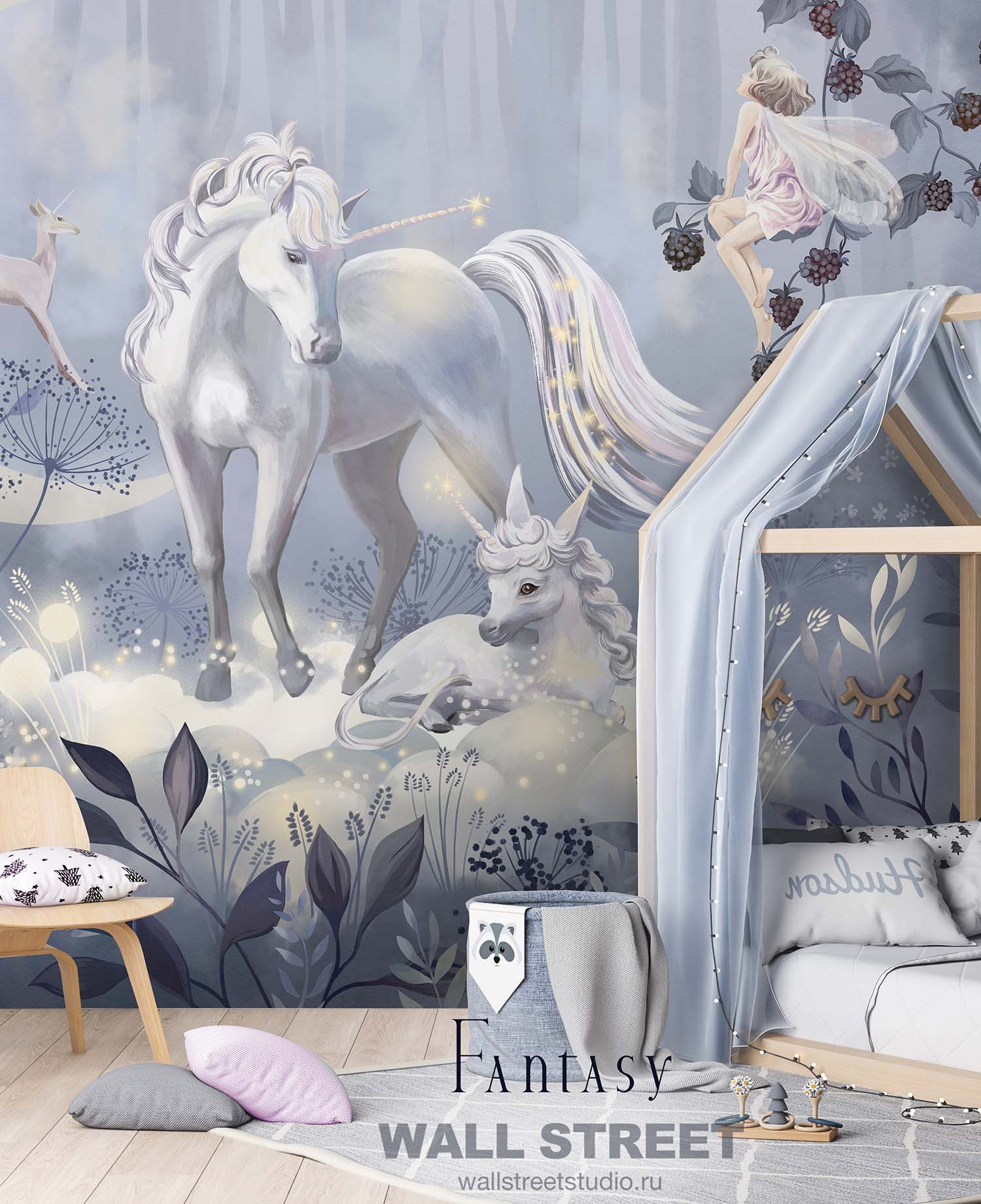 Обои из коллекций Wall Street в трех комнатах: EUPHORIA 22 в гостиной, Zoo в детской комнате, а в спальне Selva