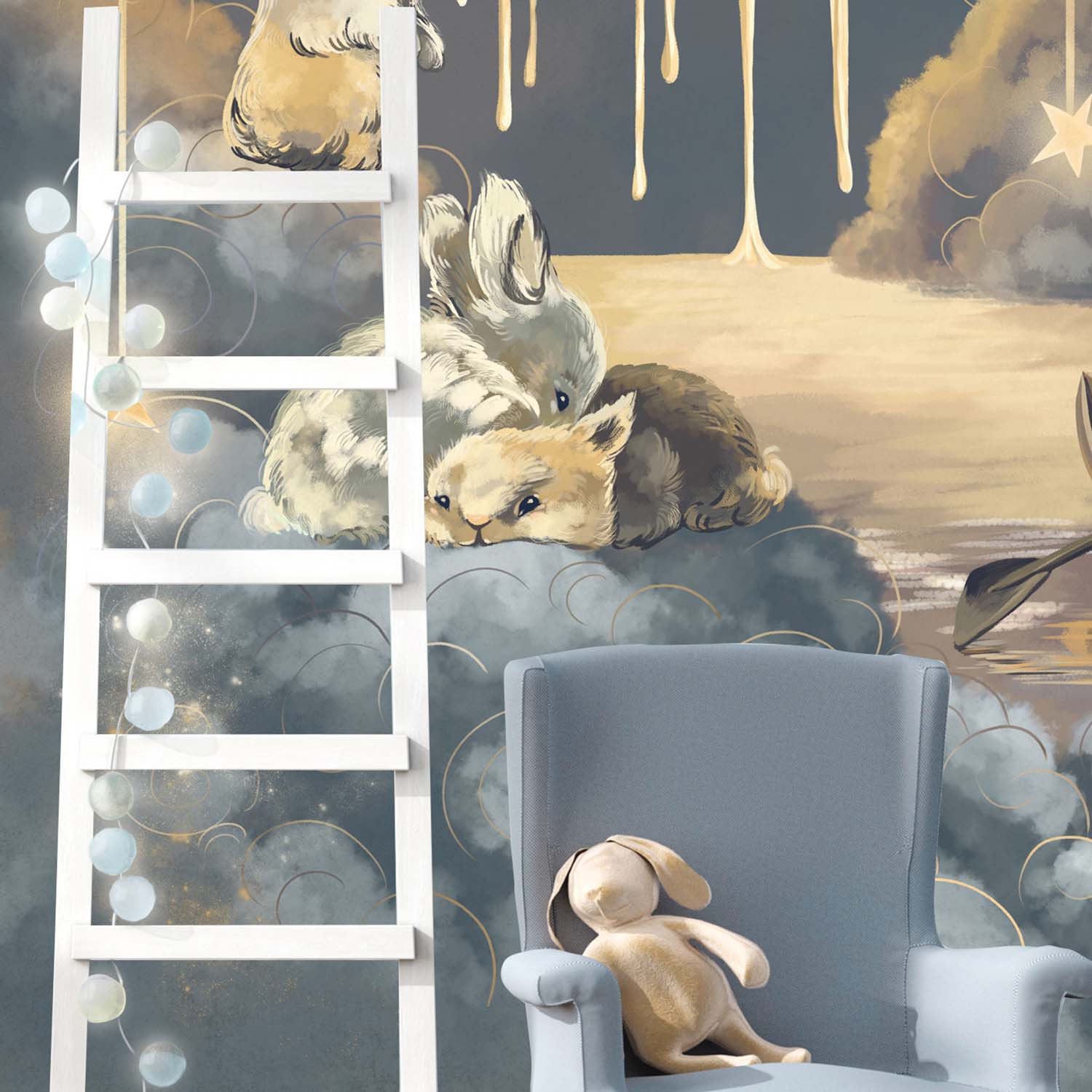Обои из коллекций Wall Street в трех комнатах: EUPHORIA 22 в гостиной, Zoo в детской комнате, а в спальне Selva