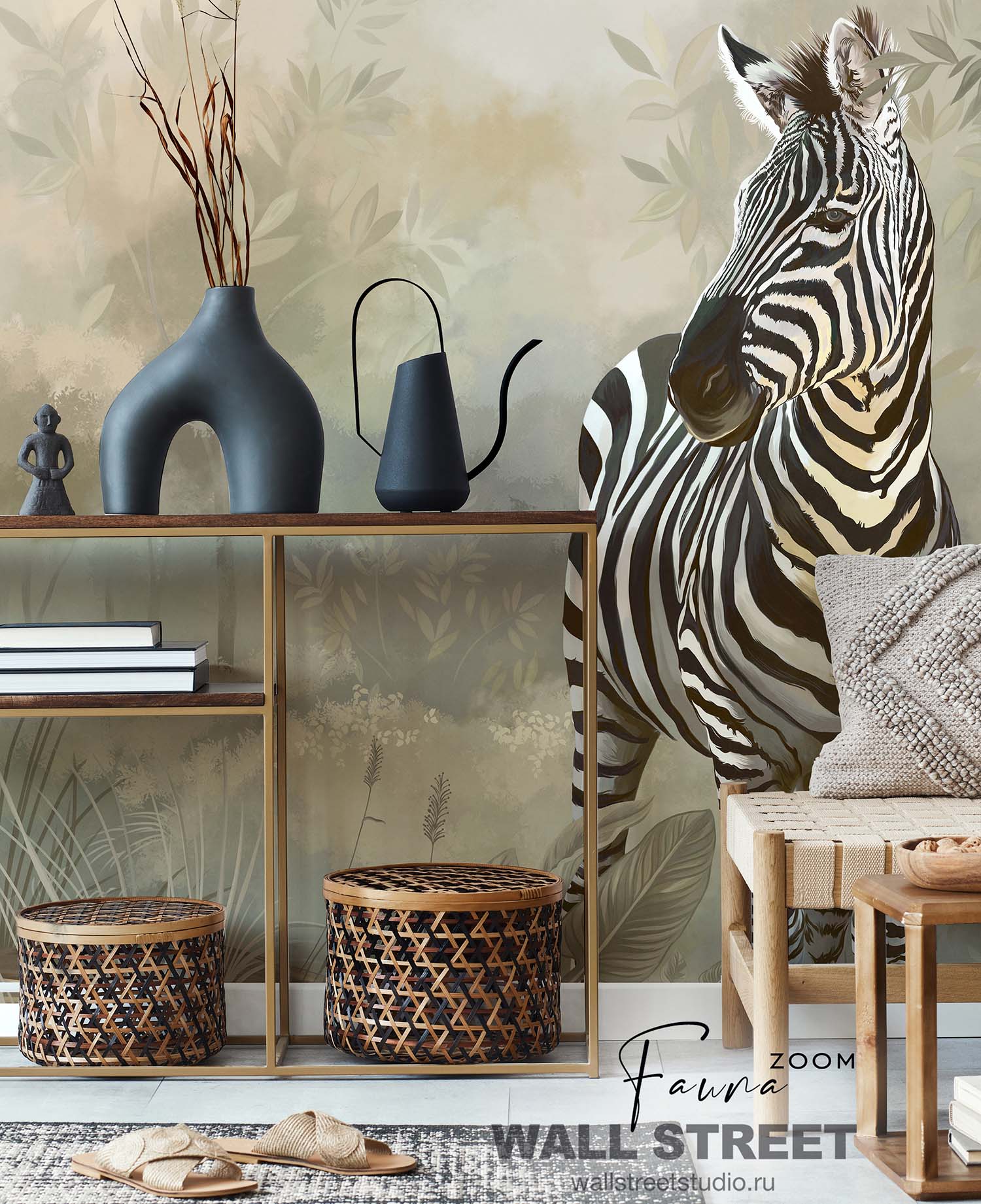 Обои из коллекций Wall Street в трех комнатах: EUPHORIA 22 в гостиной, Zoo в детской комнате, а в спальне Selva