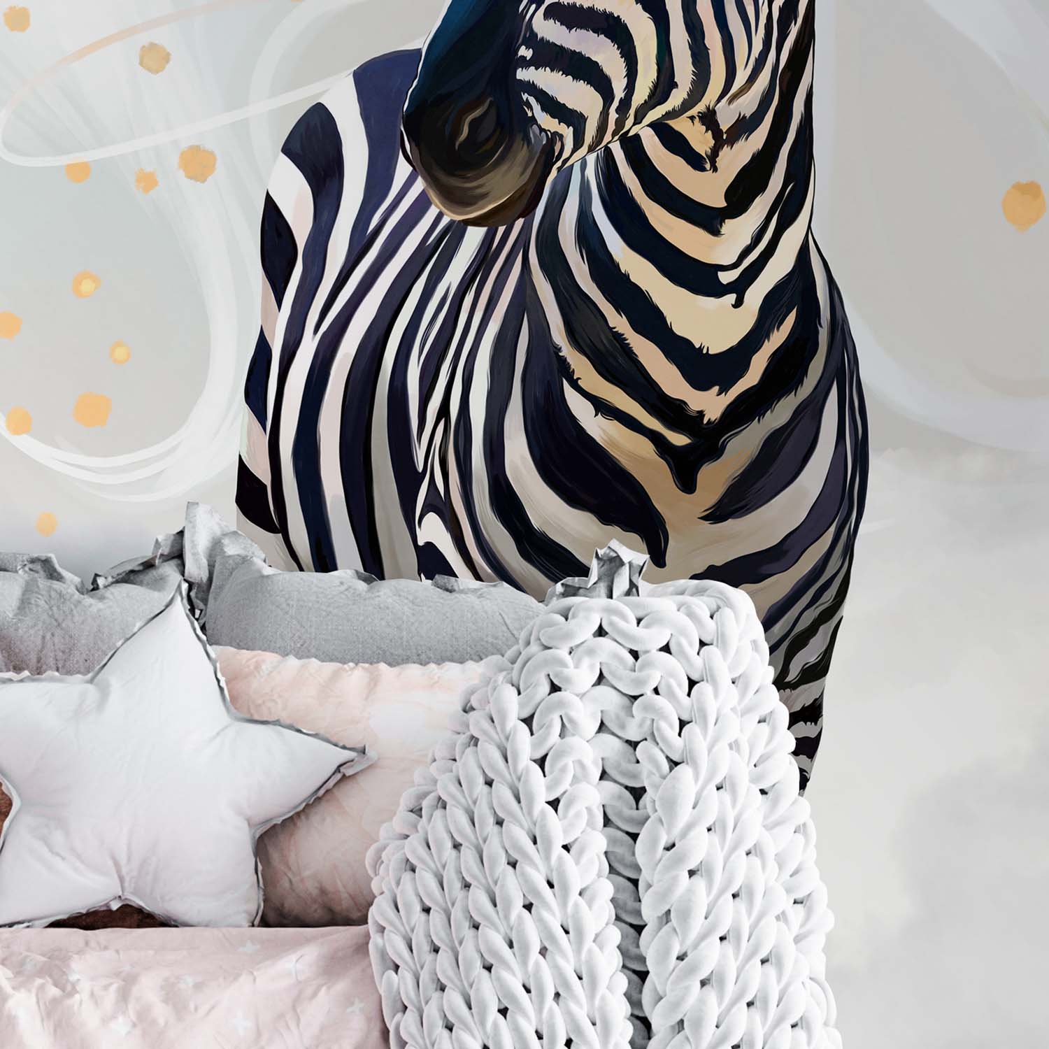 - Адаптация изображения под размер вашей стены с учетом расстановки мебели