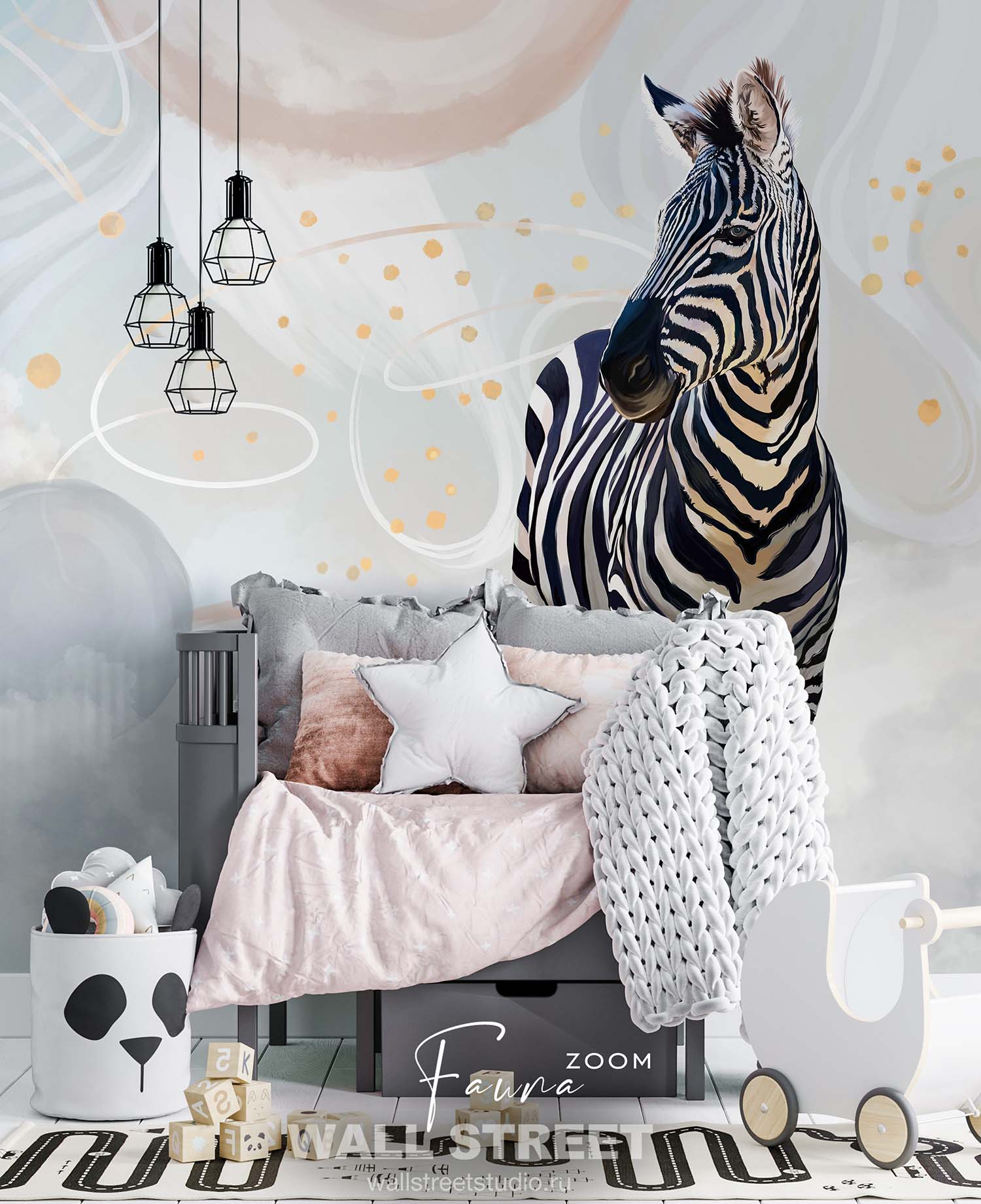 Обои из коллекций Wall Street в трех комнатах: EUPHORIA 22 в гостиной, Zoo в детской комнате, а в спальне Selva