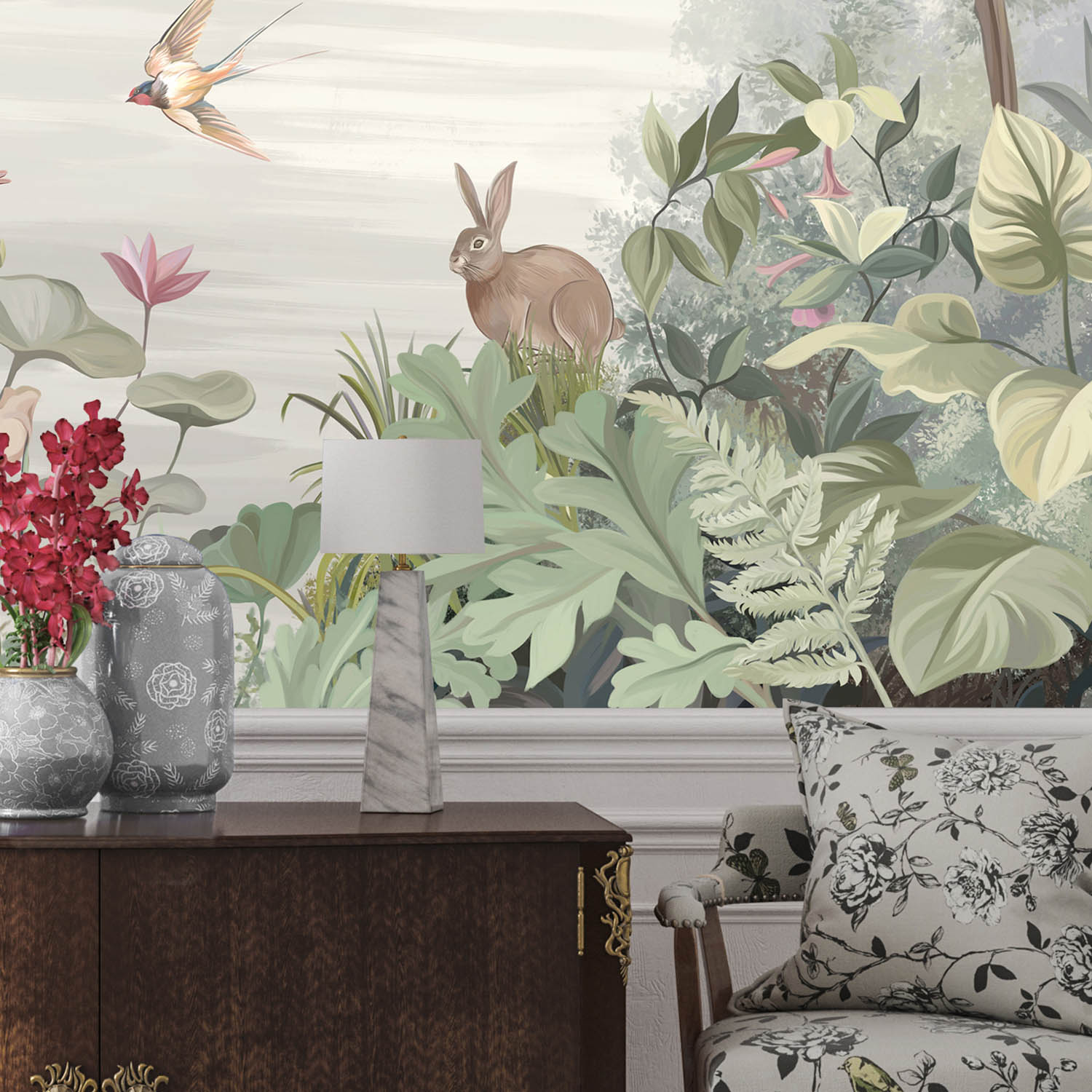 - Адаптация изображения под размер вашей стены с учетом расстановки мебели
