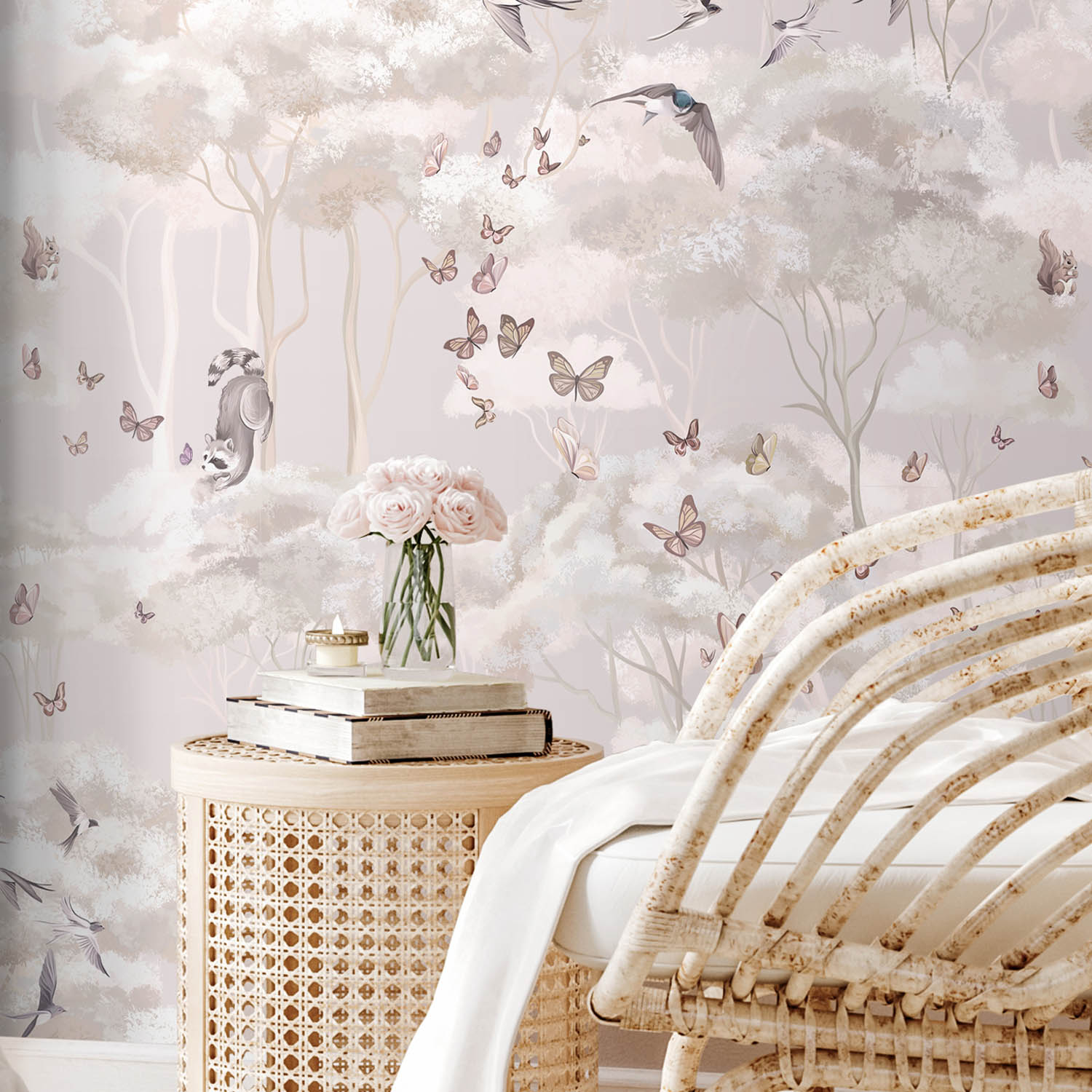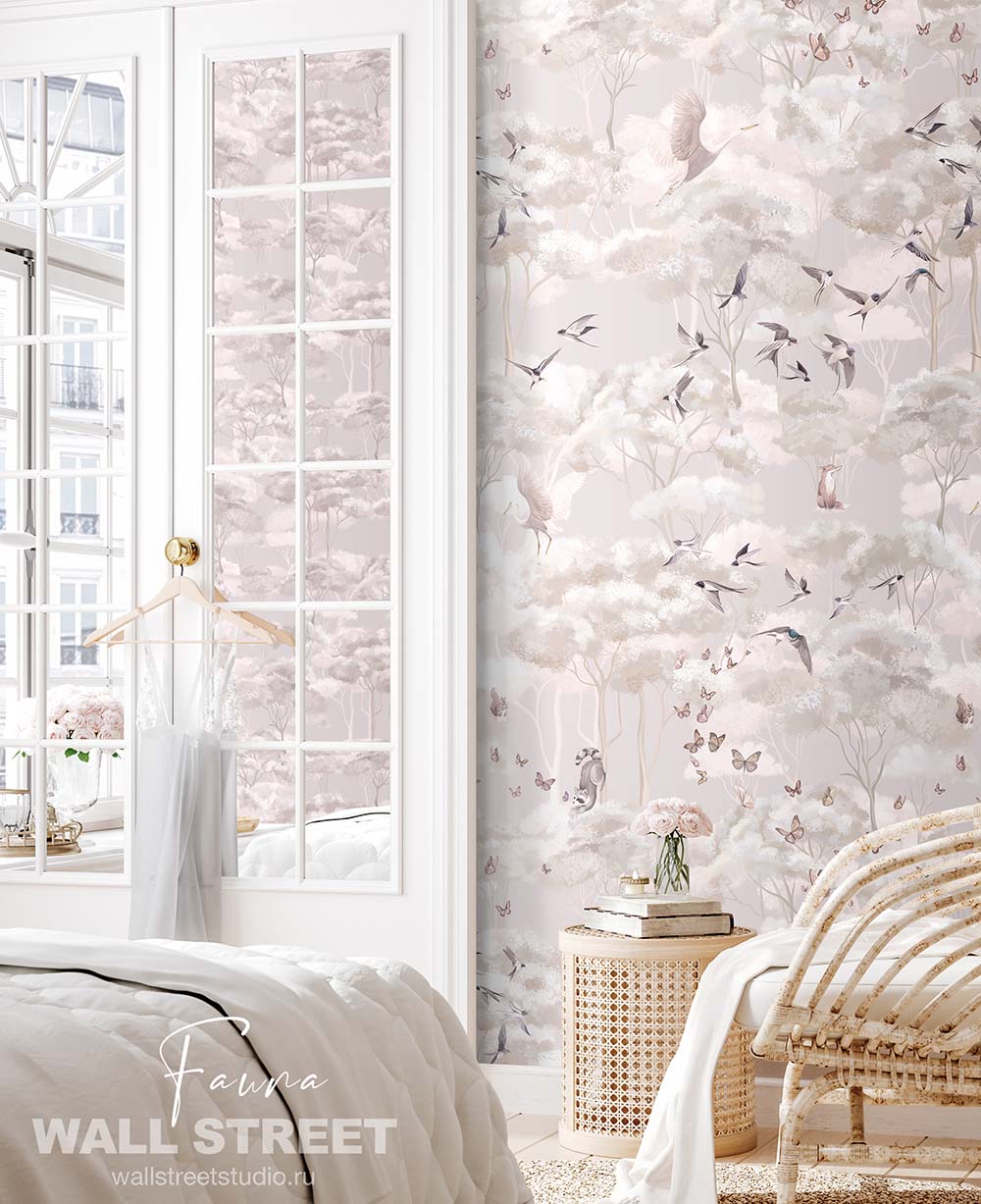 Обои из коллекций Wall Street в трех комнатах: EUPHORIA 22 в гостиной, Zoo в детской комнате, а в спальне Selva